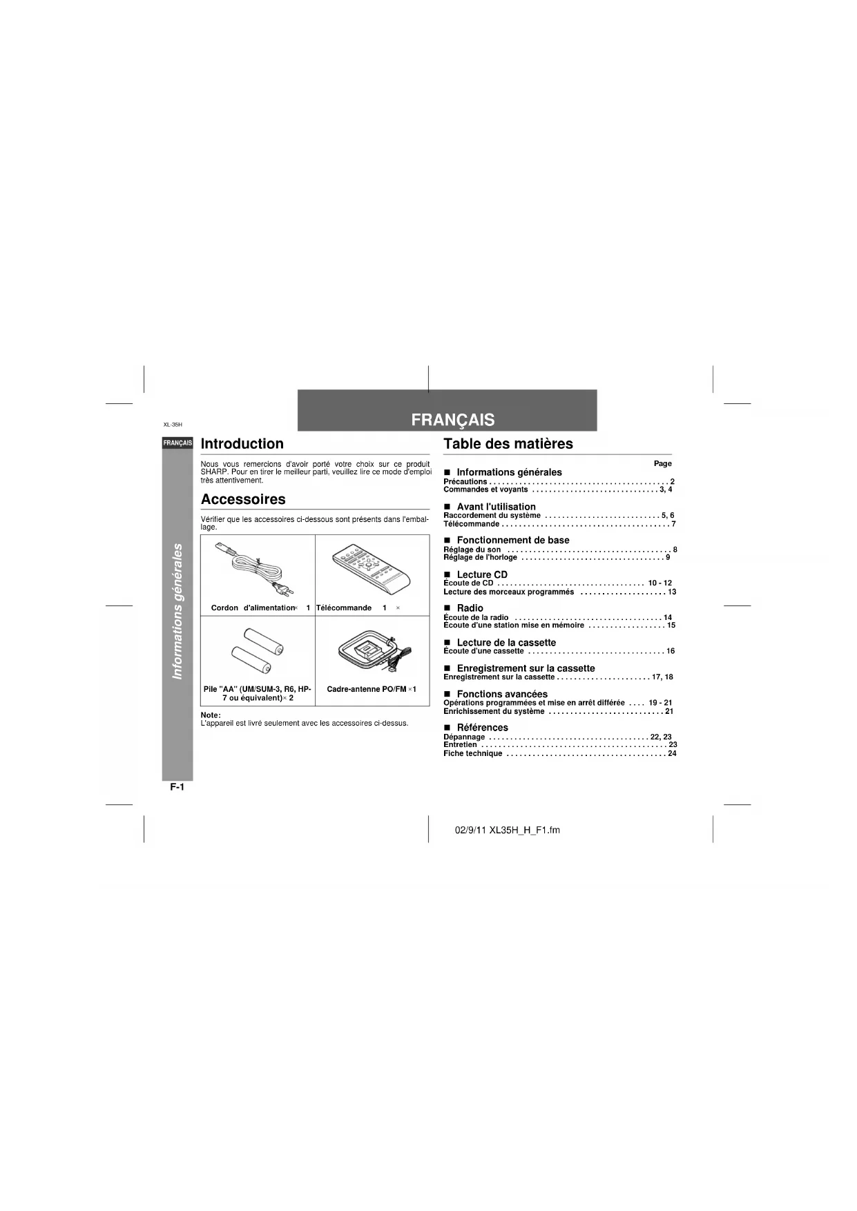 Retrouvez gratuitement la notice de l'appareil XL35H SHARP au format PDF.