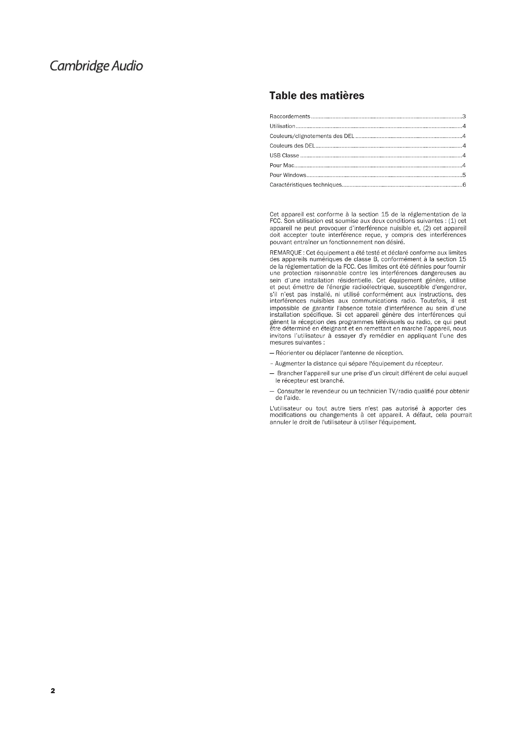 Cambridge Audio. Visitez le site de support de Cambridge Audio pour télécharger la dernière version du pilote USB 2.0. Remarque : Avant d'installer la dernière version du pilote, désinstallez les versions précédentes du pilote USB 2.0 de Cambridge Audio.