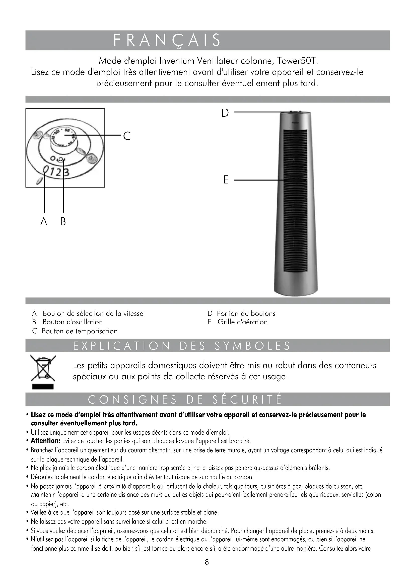 Tower 50T - Ventilateur INVENTUM - Notice d'utilisation et mode d'emploi gratuit