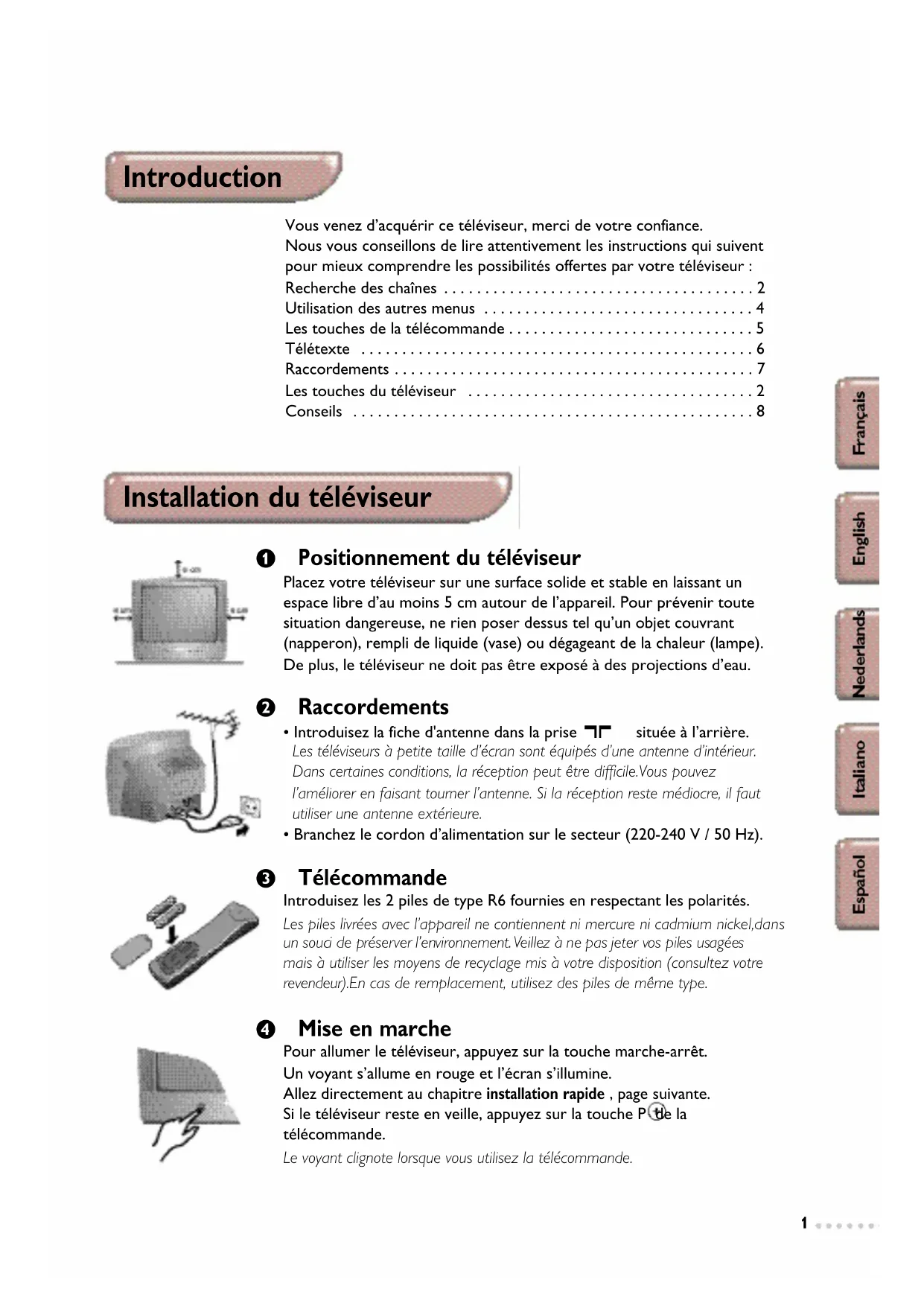 Nous vous conseillons de dire attentivement les instructions qui seront pourieux comprendre les possibilites offertes par votre téléviseur :
