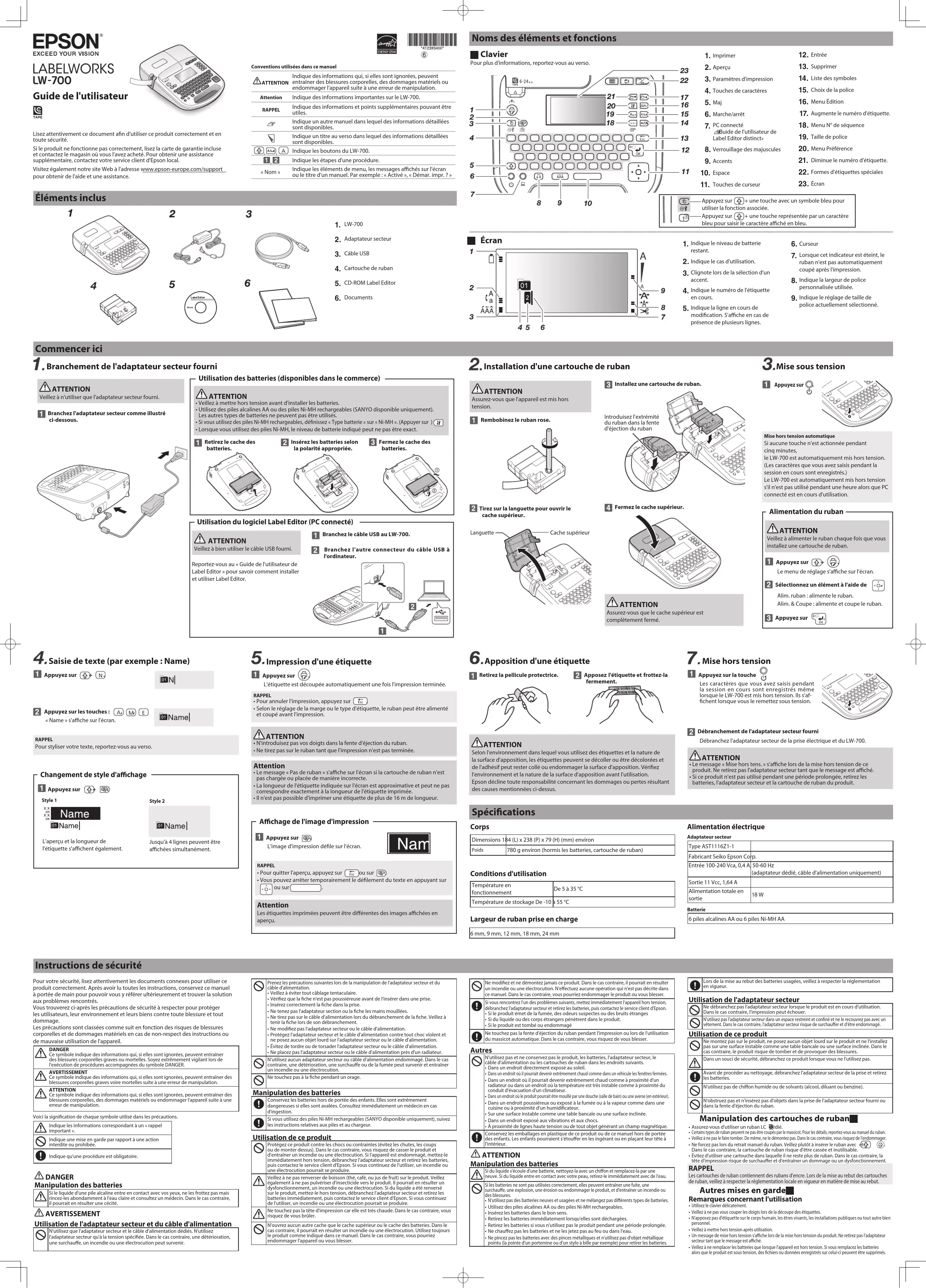 LabelWorks LW700 - Imprimante d'étiquettes EPSON - Notice d'utilisation et mode d'emploi gratuit