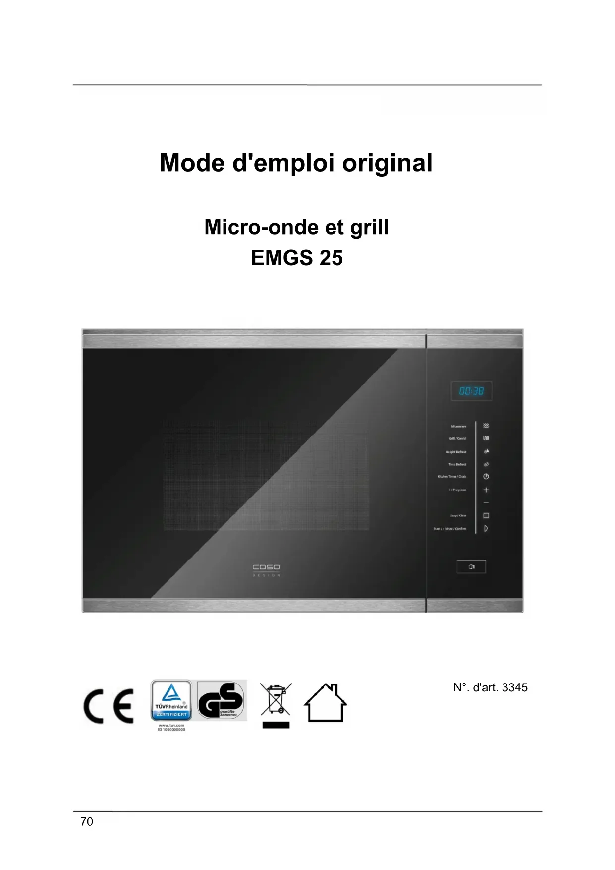 EMGS 25 - Four à micro-ondes CASO - Notice d'utilisation et mode d'emploi gratuit