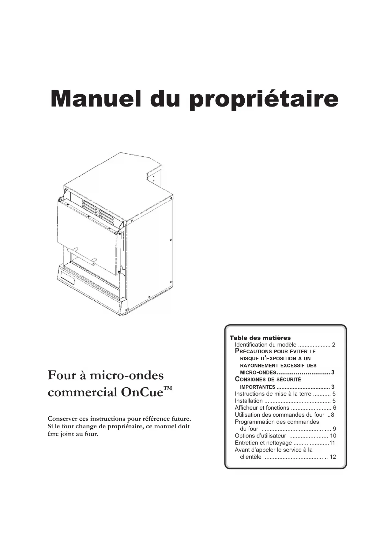Conserver ces instructions pour référence future. Si le four change de propriétaire, ce manuel doit être joint au four.