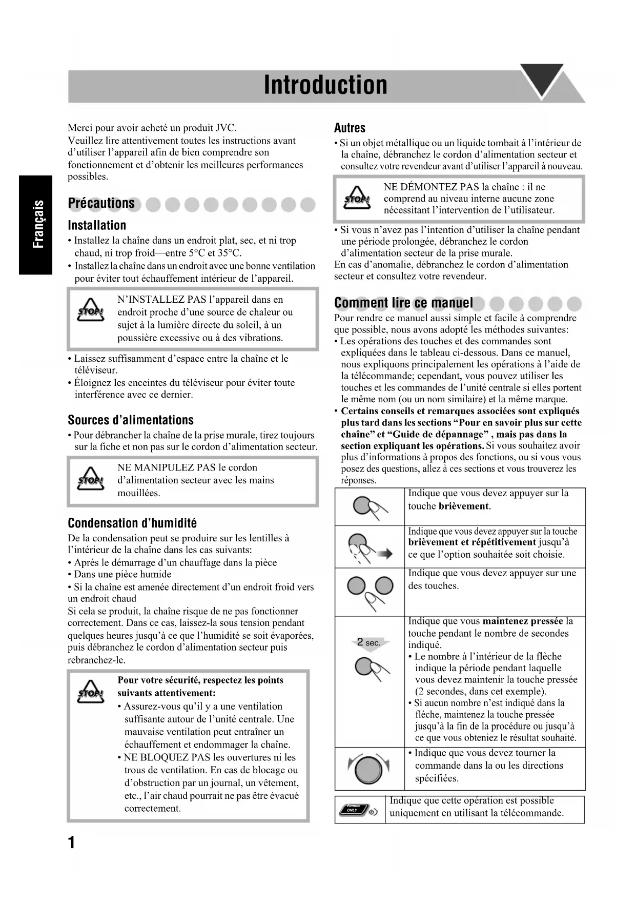9, 17 Body-UX-TB3_DE_5.fm Page 24 Friday, November 14, 2008 9:52 AM1 Français Introduction Merci pour avoir acheté un produit JVC.Veuillez lire attentivement toutes les instructions avant d’utiliser l’appareil afin de bien comprendre son fonctionnement et d’obtenir les meilleures performances possibles. Précautions Installation