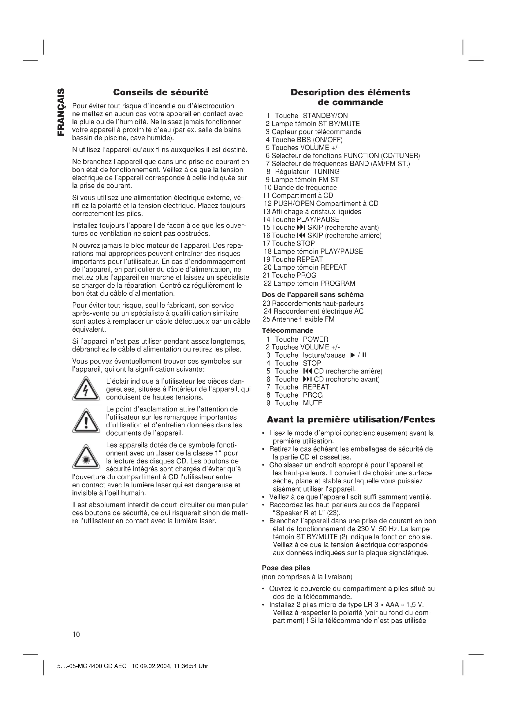 Retrouvez gratuitement la notice de l'appareil MC 4400 CD AEG au format PDF.