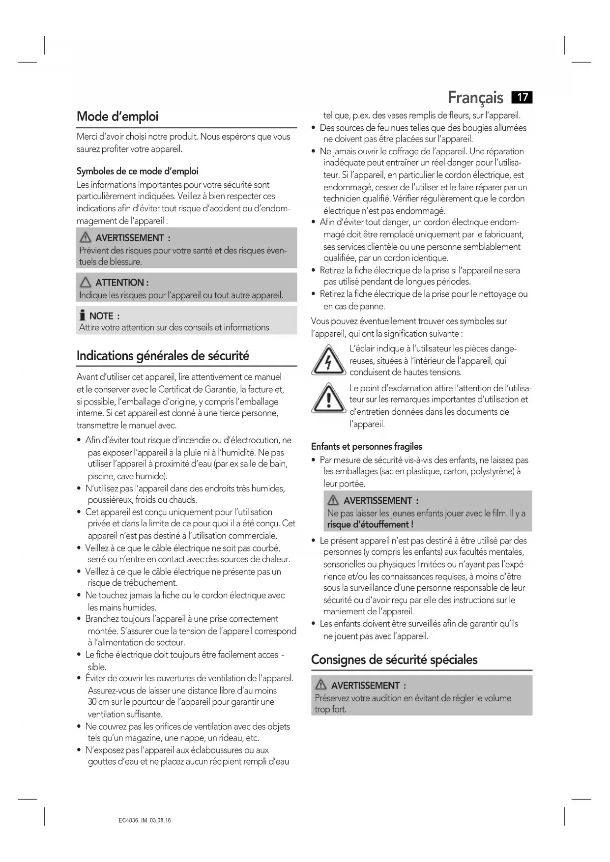 EC 4836 - Système hifi AEG - Notice d'utilisation et mode d'emploi gratuit