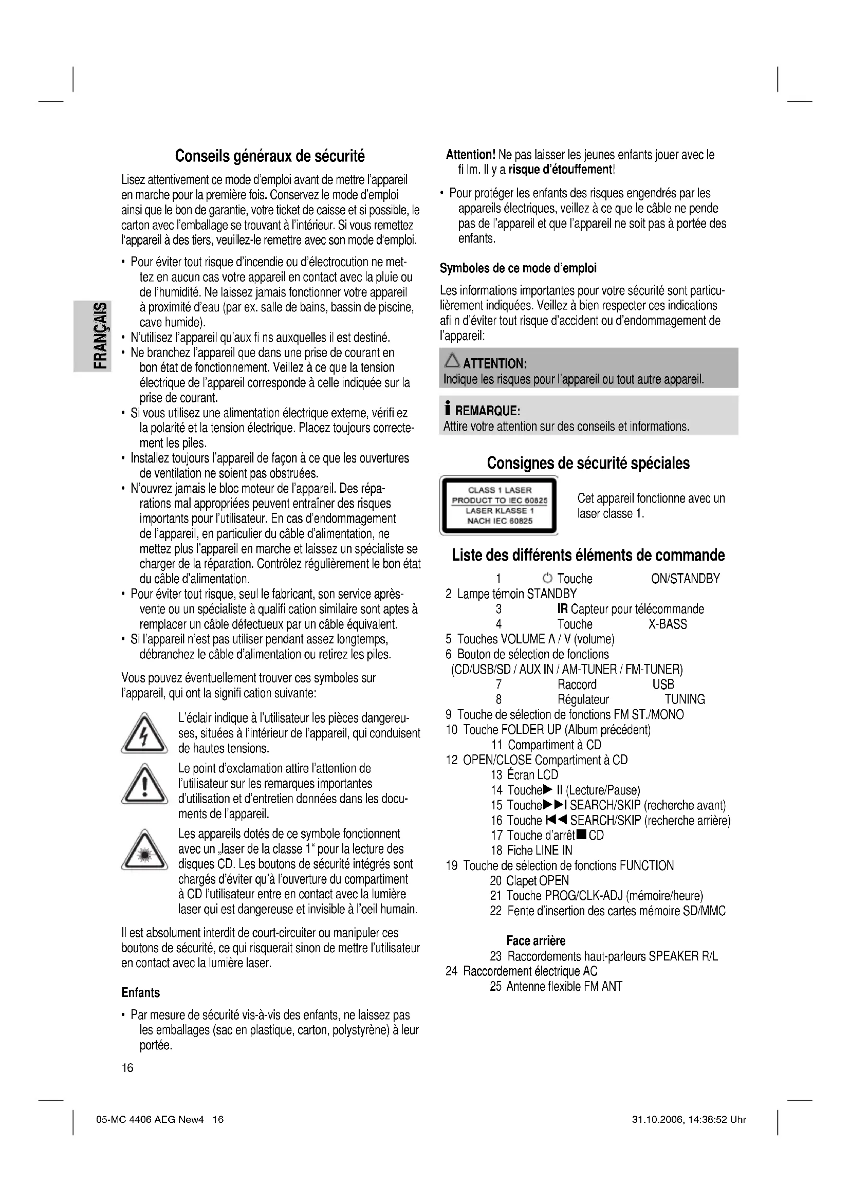 MODE D'EMPLOI MC 4406 CD AEG