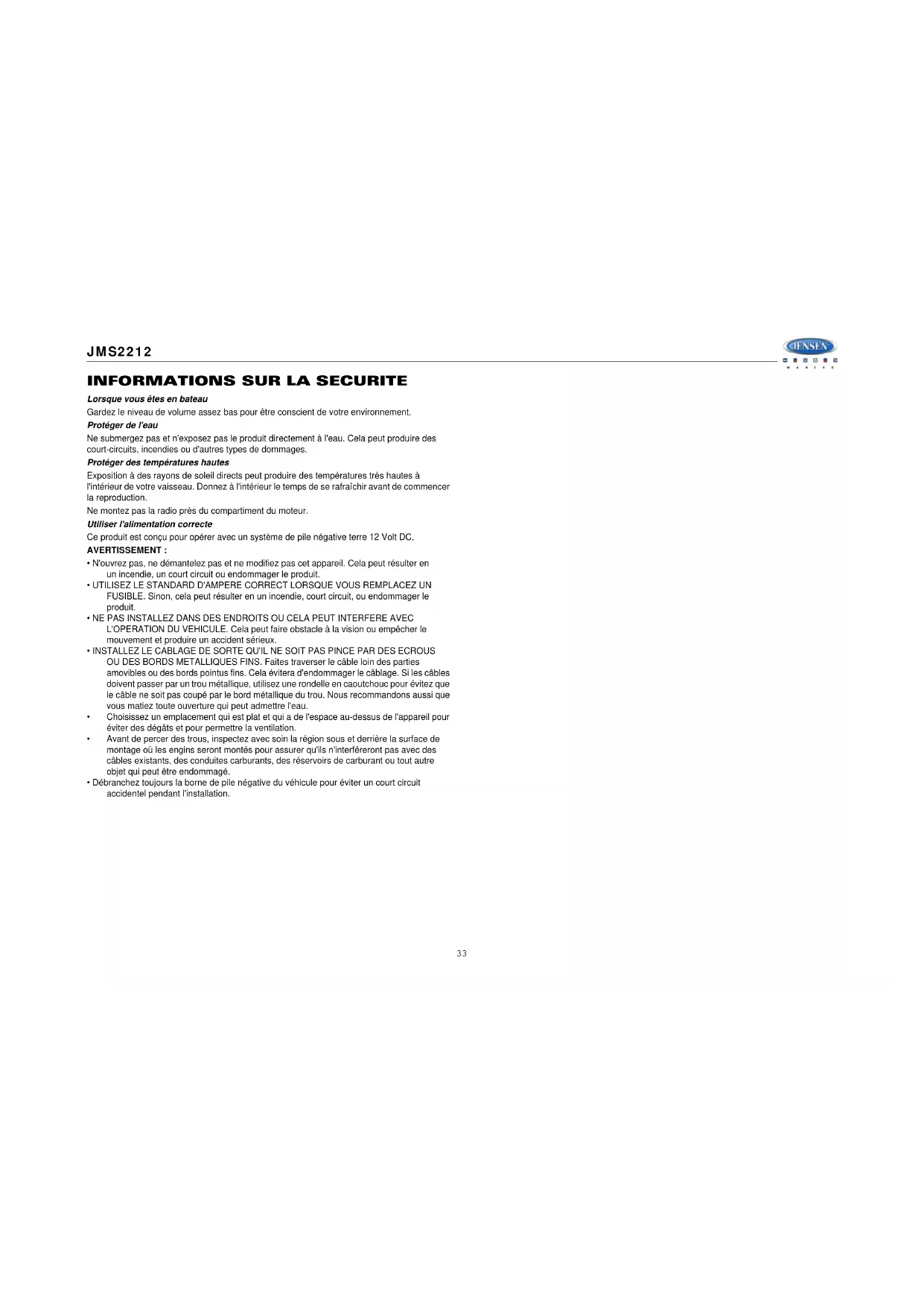 MODE D'EMPLOI JMS2212 JENSEN