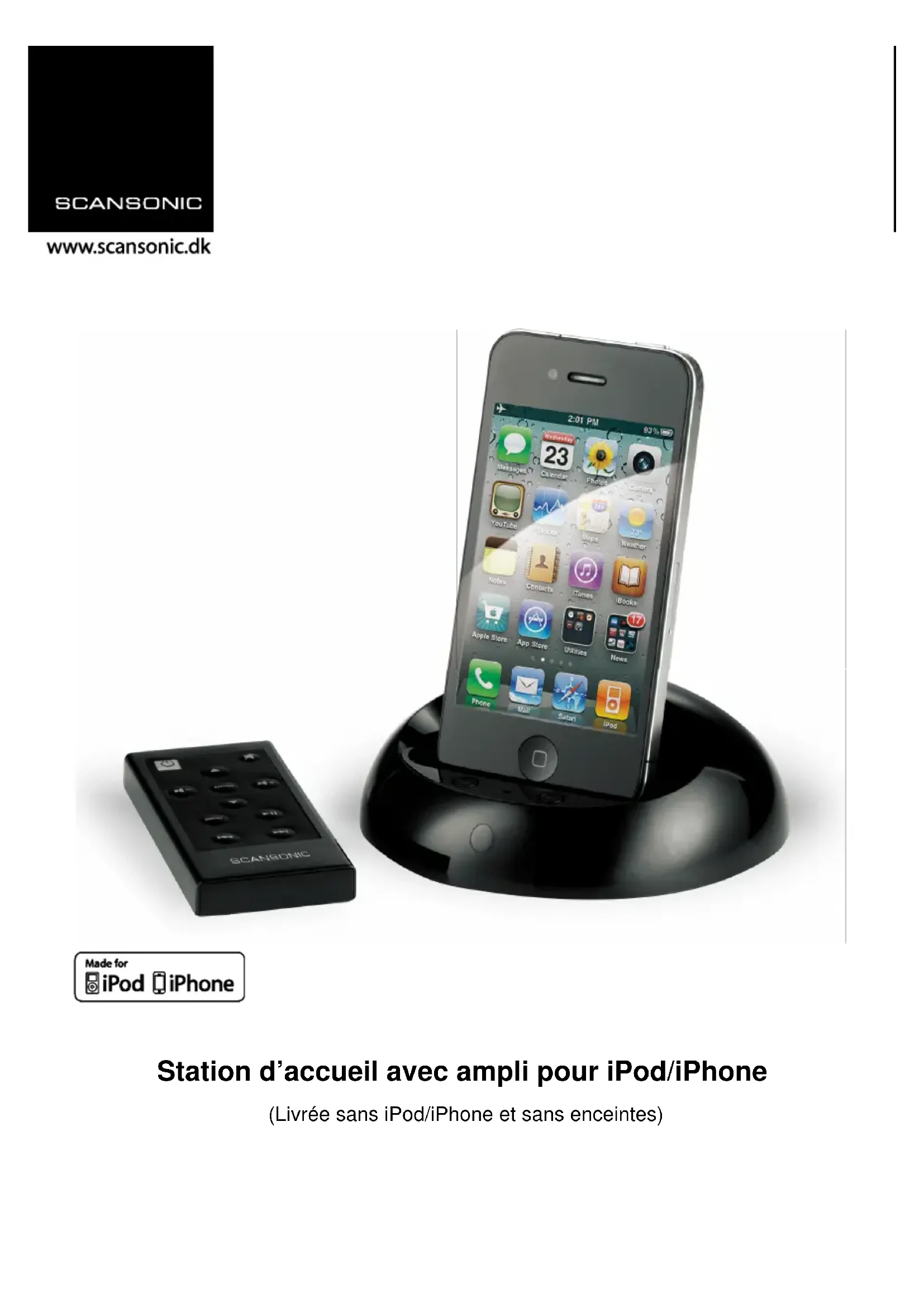 Station d’accueil avec ampli pour iPod/iPhone (Livrée sans iPod/iPhone et sans enceintes)Station d’accueil avec ampli pour iPod/iPhone