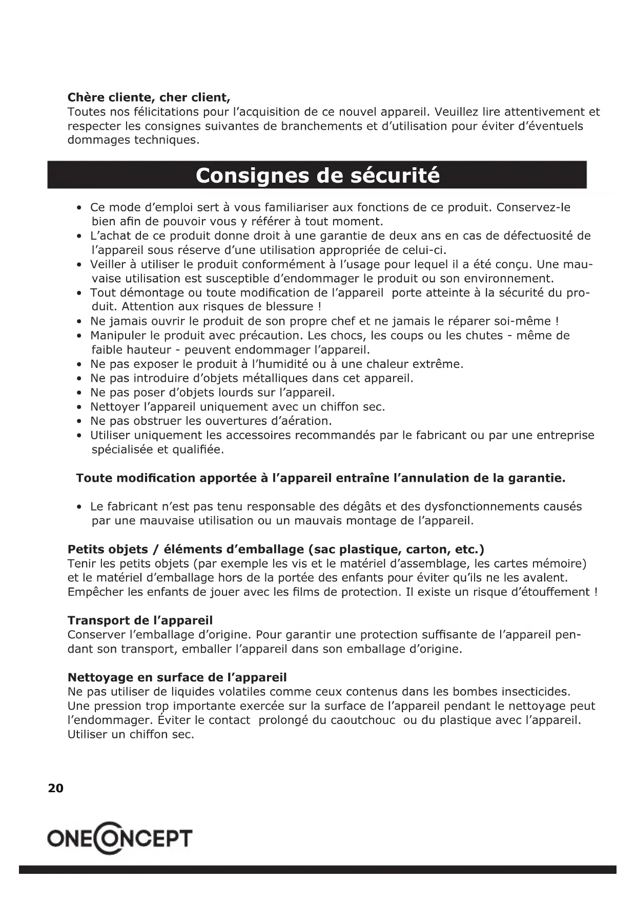 Chère cliente, cher client, Toutes nos félicitations pour l’acquisition de ce nouvel appareil. Veuillez lire attentivement et respecter les consignes suivantes de branchements et d’utilisation pour éviter d’éventuels dommages techniques. Consignes de sécurité