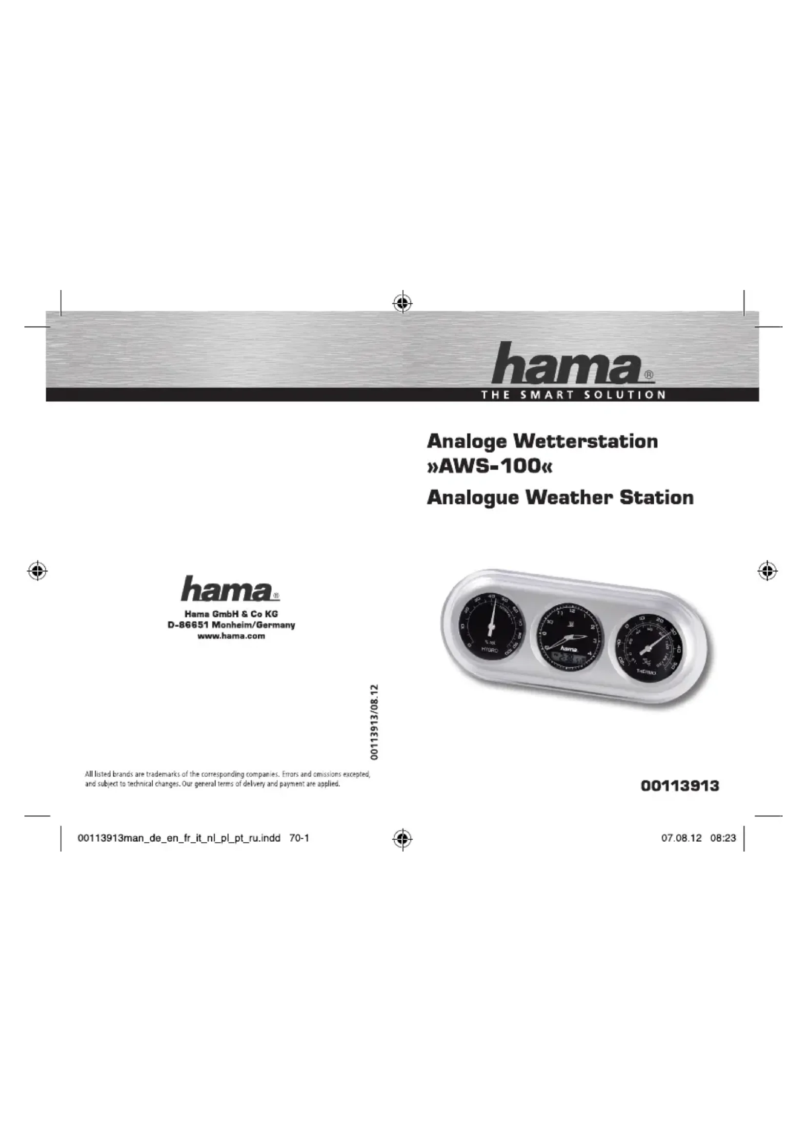 Retrouvez gratuitement la notice de l'appareil AWS100 HAMA au format PDF.