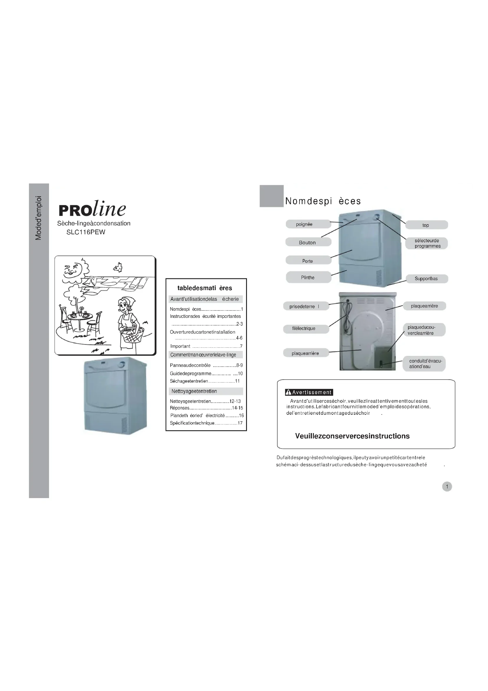 SLC 116 PEW - Seche linge PROLINE - Notice d'utilisation et mode d'emploi gratuit