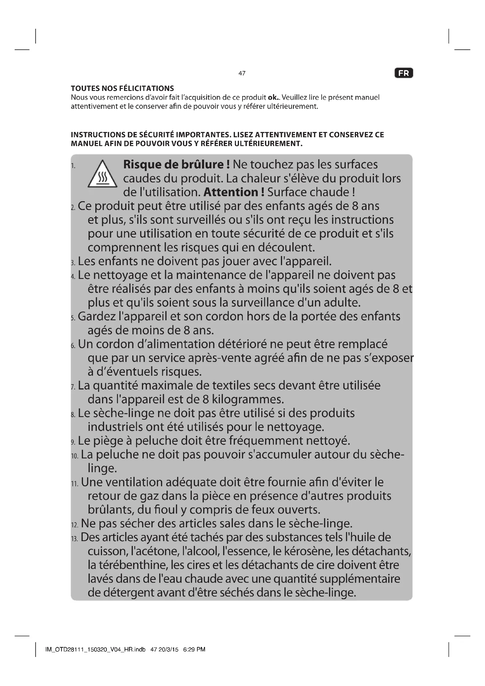 OTD 28111 - Sèche-linge OK - Notice d'utilisation et mode d'emploi gratuit