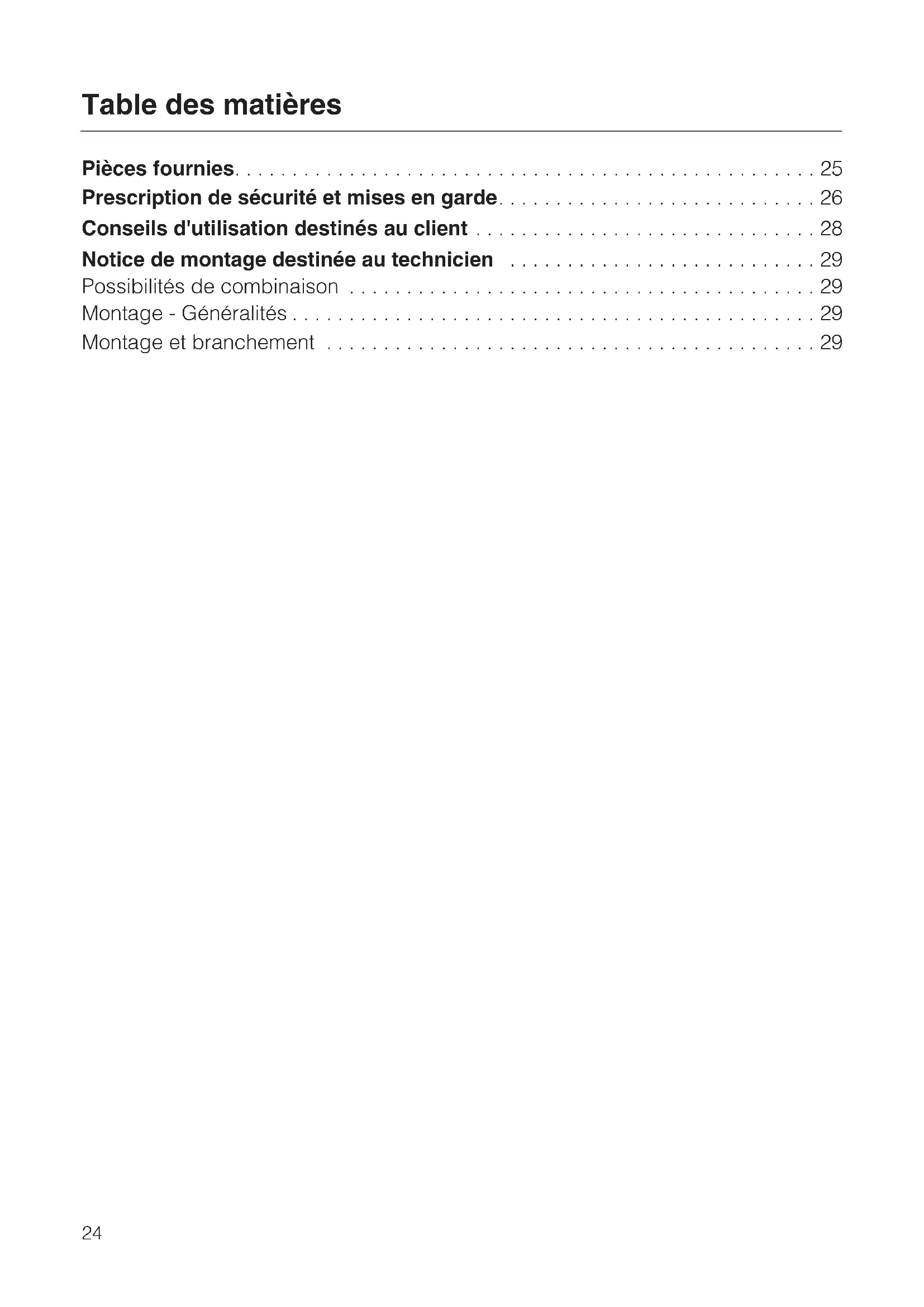 tionnements sur votre appareil. Prescription de sécurité et mises en garde 26Des travaux d'installation, d'entre