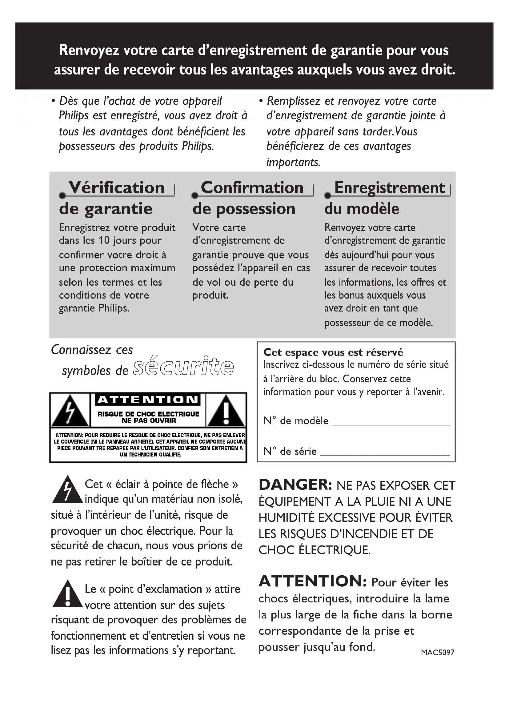 - Dans que l'achat de votre apparéil Philips est enregistré, vous avez droit à tous les avantages dont bénéficient les possesseurs des produits Philips.