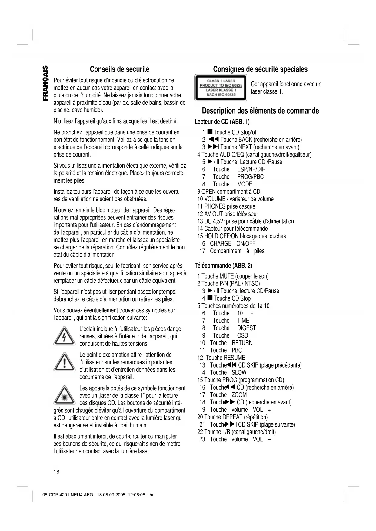 MODE D'EMPLOI CDP 4201 MP3VCD AEG