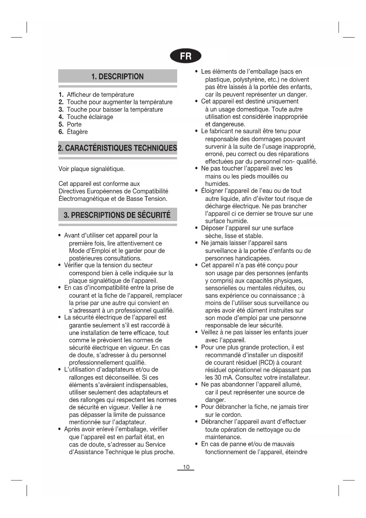 - Cet appareil est destiné uniquement à un usage domestique. Toute autre utilisation est considérée inappropriée et dangereuse.