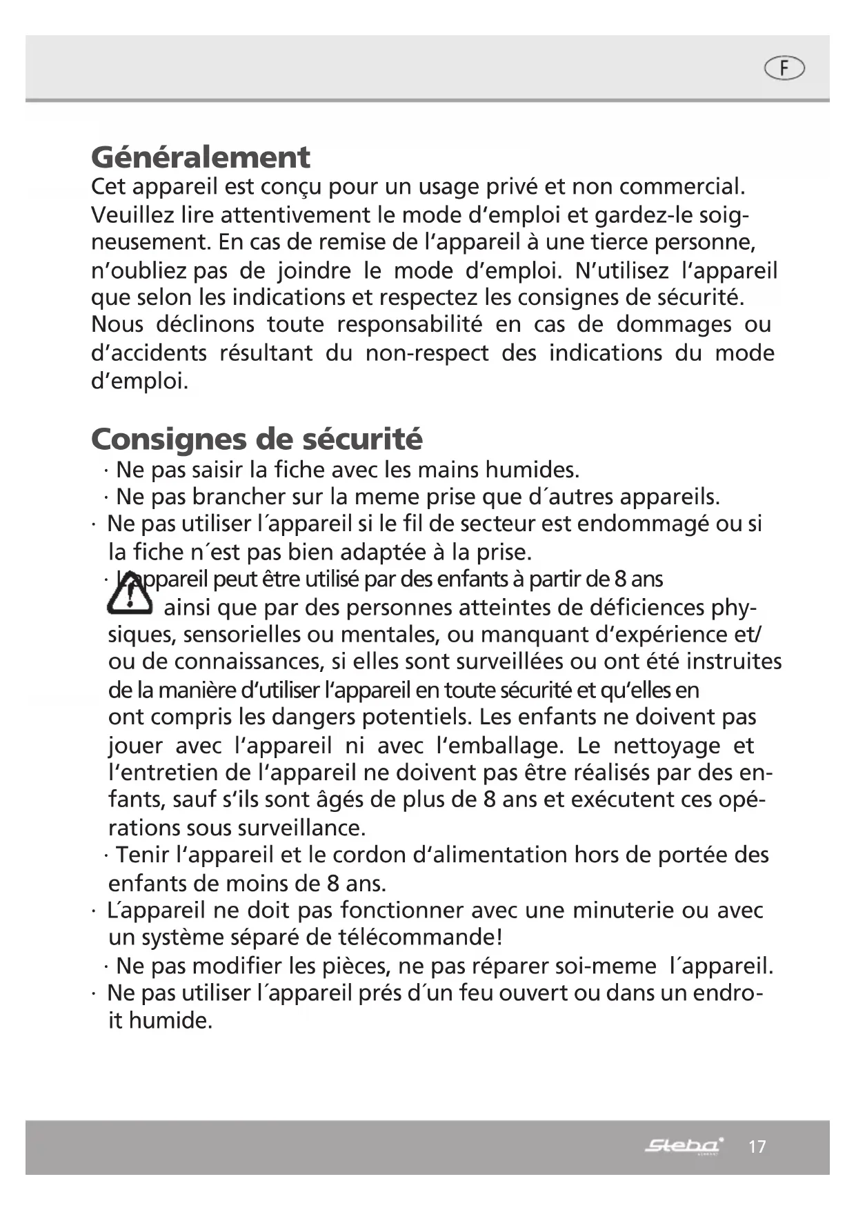 Retrouvez gratuitement la notice de l'appareil IK 300 SC STEBA au format PDF.