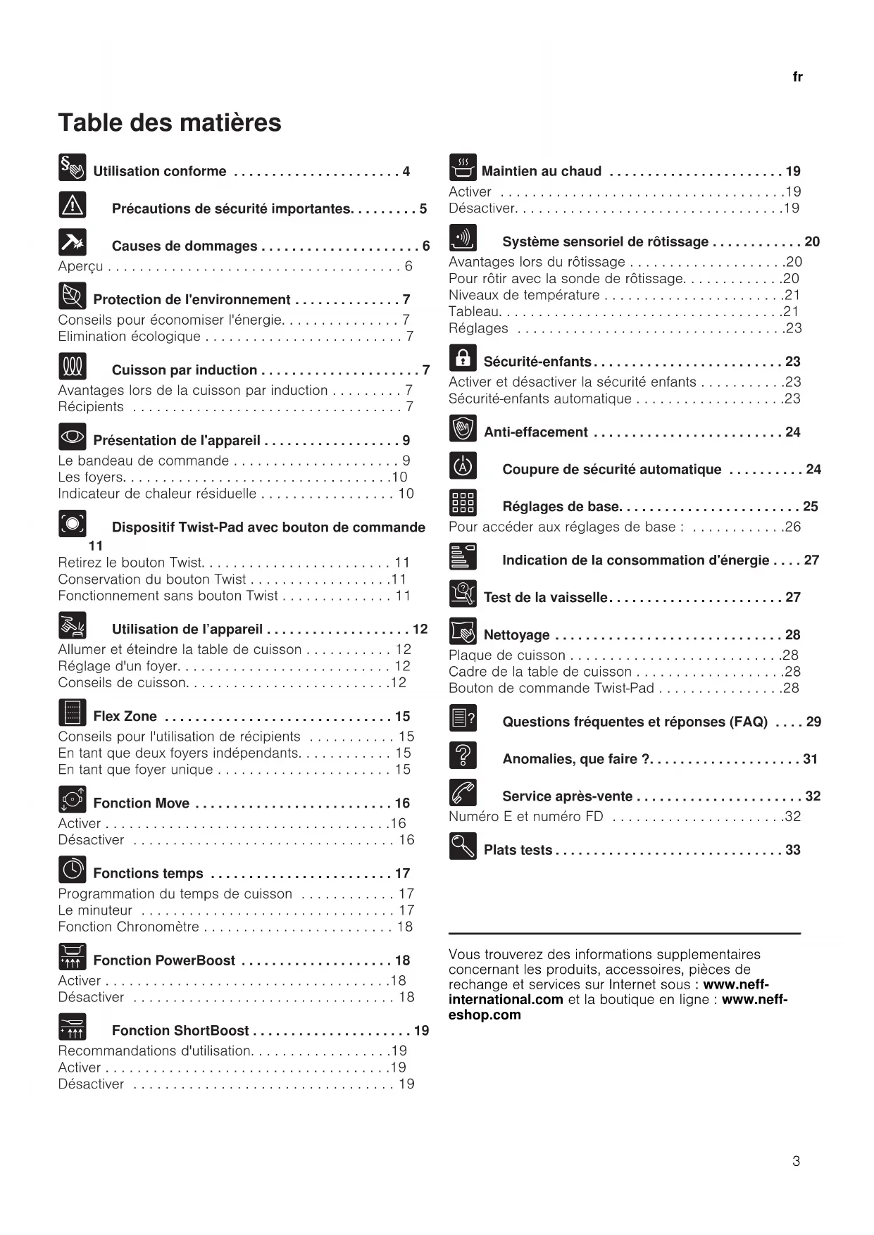 - E Plats tests Produktinfo Vous trouverez des informations supplementaires concernant les produits, accessoires, pièces de rechange et services sur Internet sous : www.neff- international.com et la boutique en ligne : www.neff- eshop.comfr Utilisation conforme p. 33