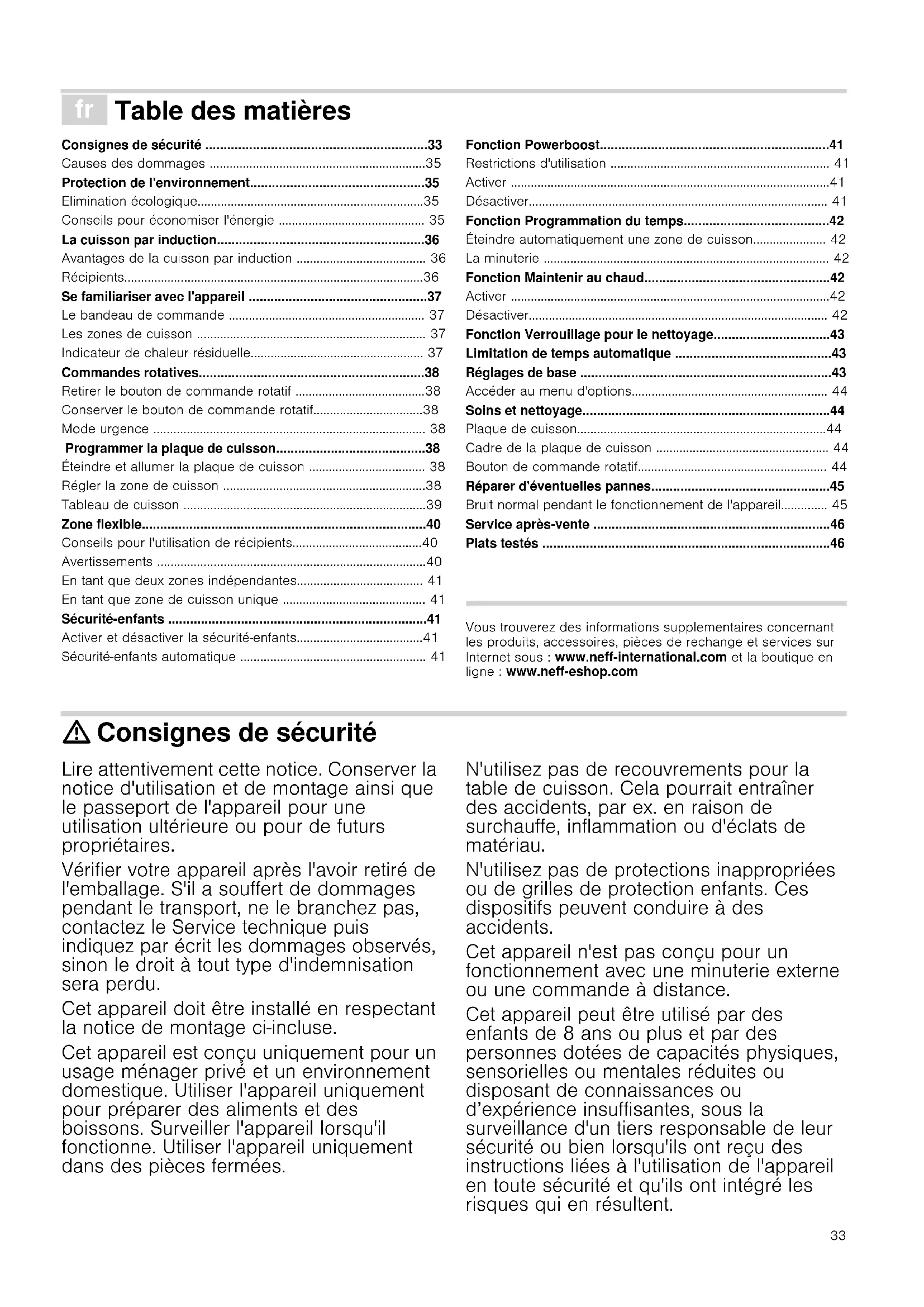 Vous trouverez des informations supplementaires concernant les produits, accessoires, pièces de rechange et services sur Internet sous : www.neff-international.com et la boutique en ligne : www.neff-eshop.com