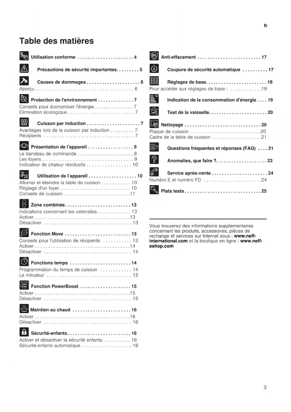 Vous trouverez des informations supplementaires concernant les produits, accessoires, pièces de rechange et services sur Internet sous : www.neff-international.com et la boutique en ligne : www.neff-eshop.com