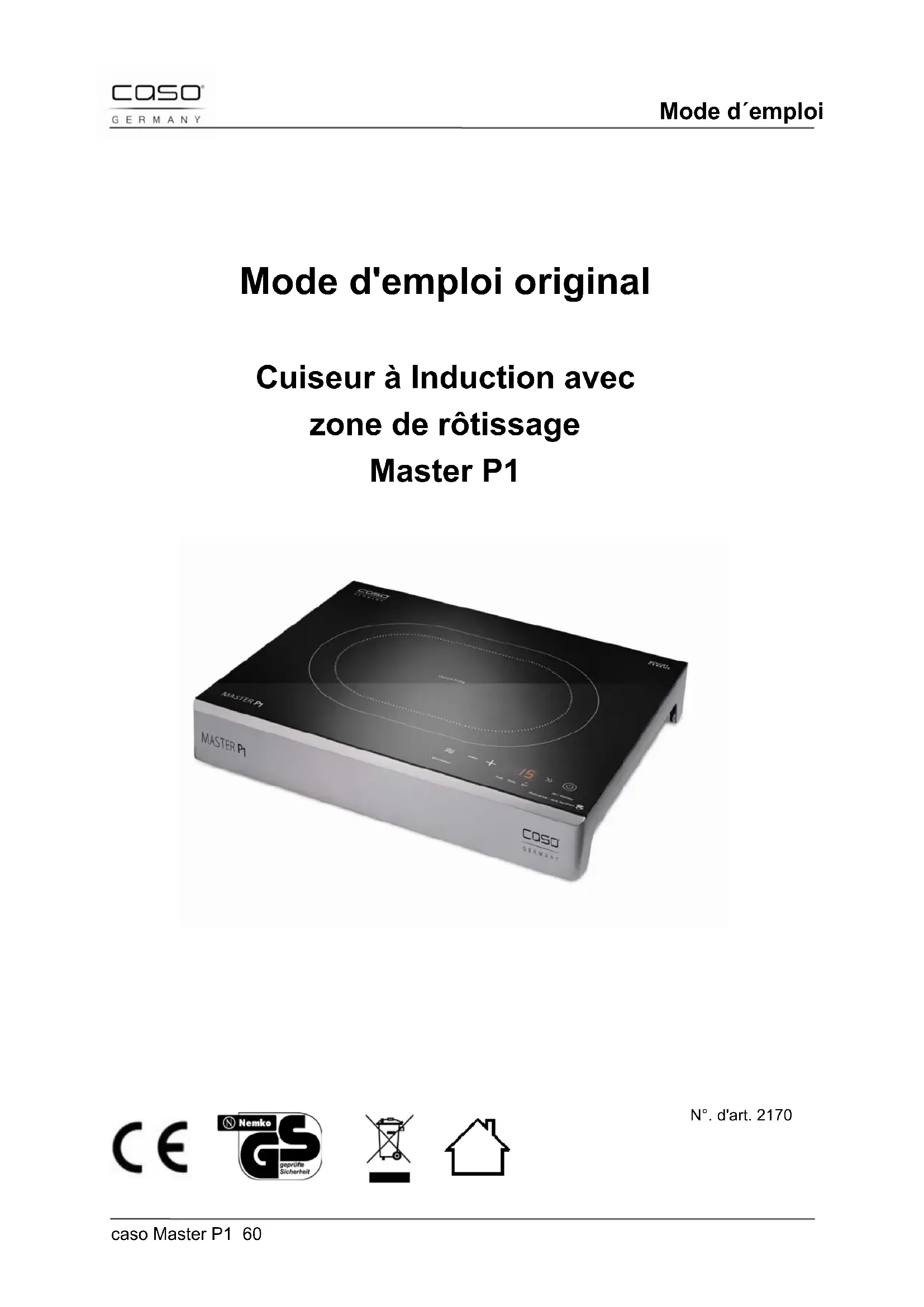 Master P1 - Cuisinière CASO - Notice d'utilisation et mode d'emploi gratuit