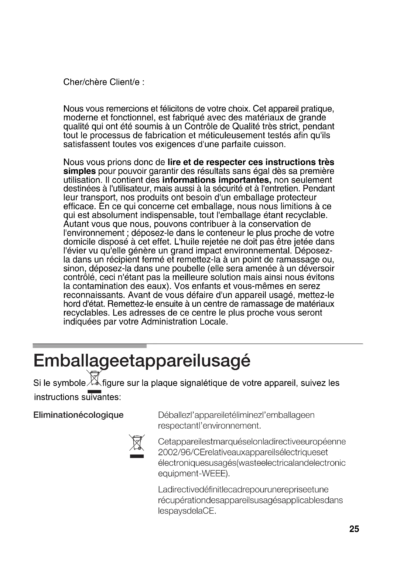 figure sur la plaque signalétique de votre appareil, suivez les instructions suivantes: Si le symbole satisfassent toutes vos exigences d'une parfaite cuisson. 25CONTENU Avertissements de Sécurité Ainsi se présente votre table de cuisson : Brûleurs à gaz Diamètre récipients (cm) conseillés Conseils pour cuisiner Avertissements d'utilisation Préparation Nettoyage et conservation Situations anormales Conditions de garantie