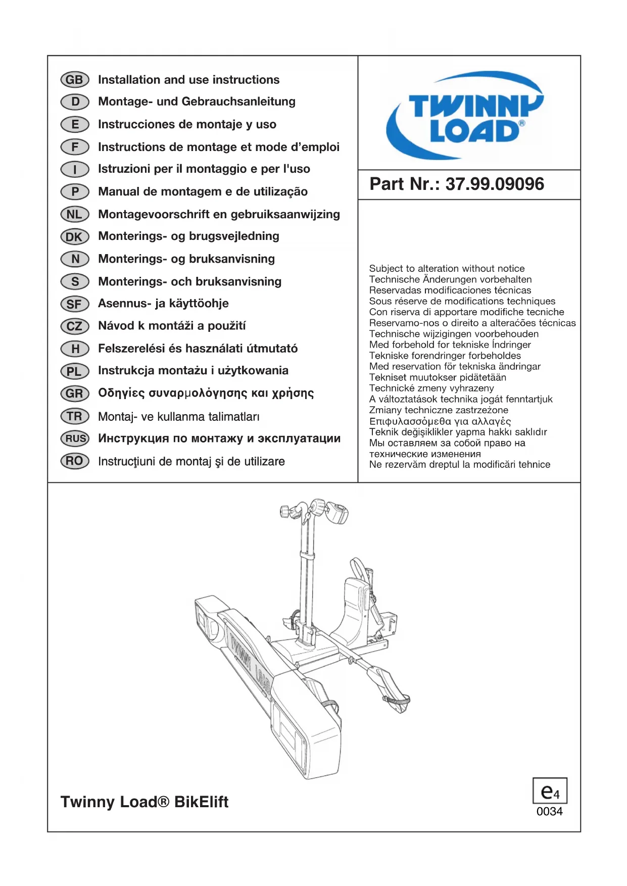 BikElift 2011 - Porte-vélo Twinny Load - Notice d'utilisation et mode d'emploi gratuit
