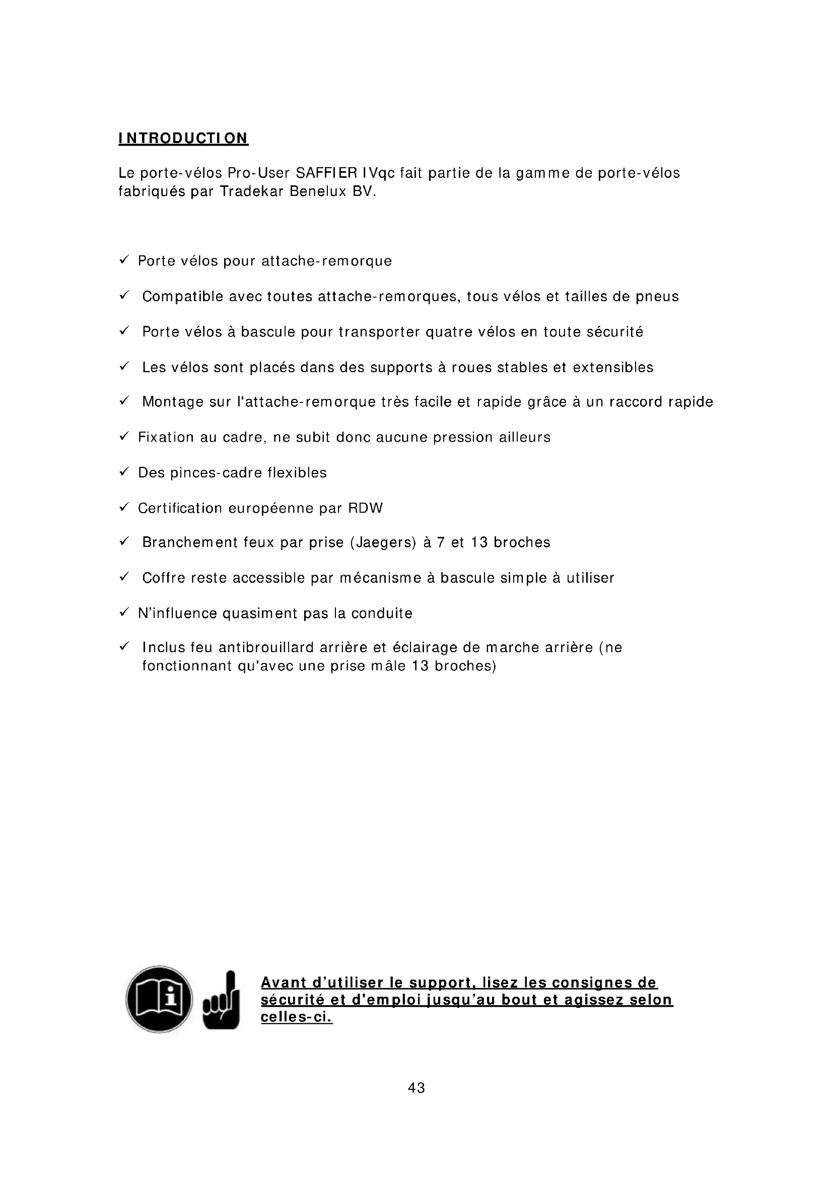 Saffier IVqc 91723 - Porte-vélo Pro-User - Notice d'utilisation et mode d'emploi gratuit