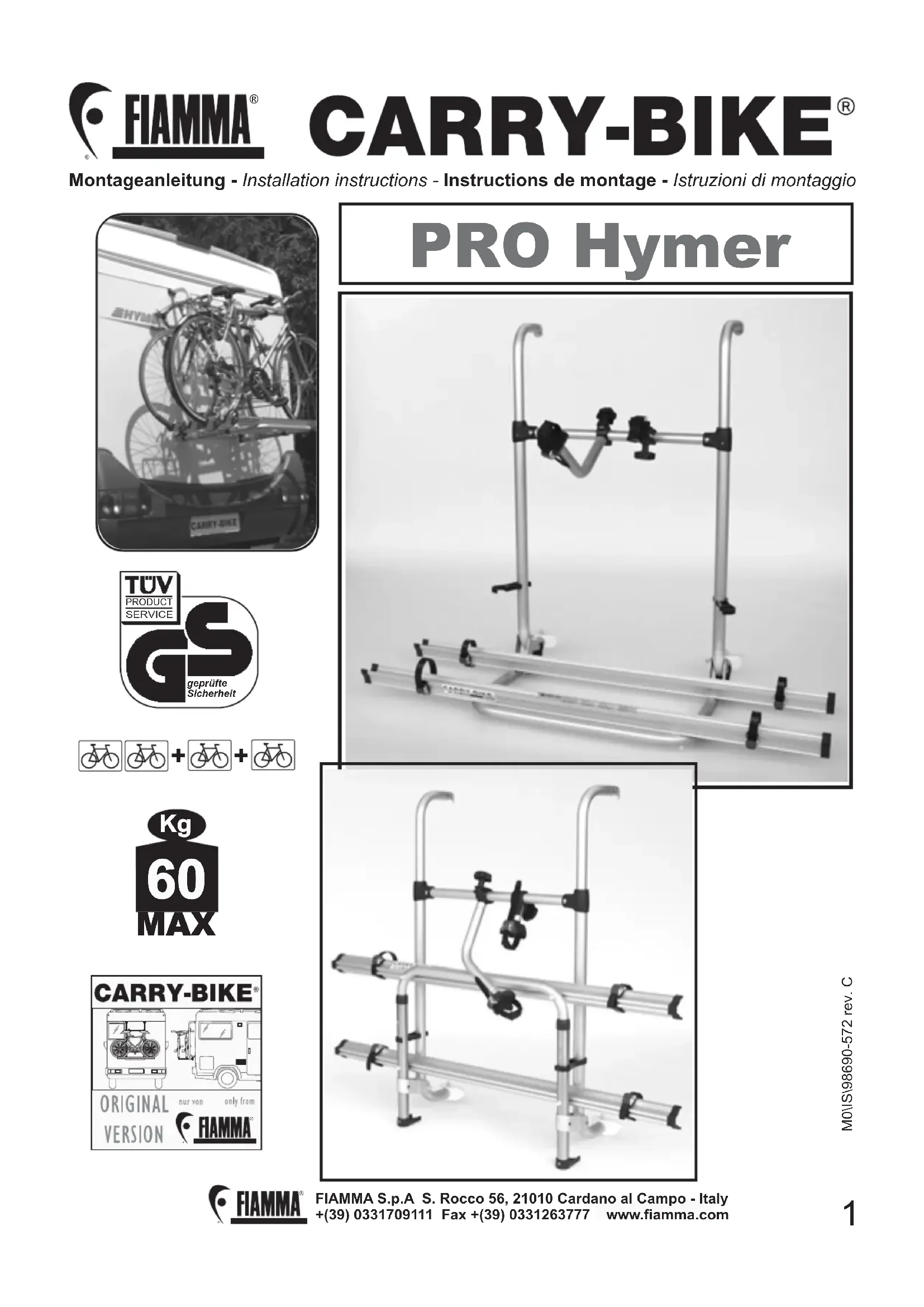 Retrouvez gratuitement la notice de l'appareil CarryBike Pro Hymer Fiamma au format PDF.