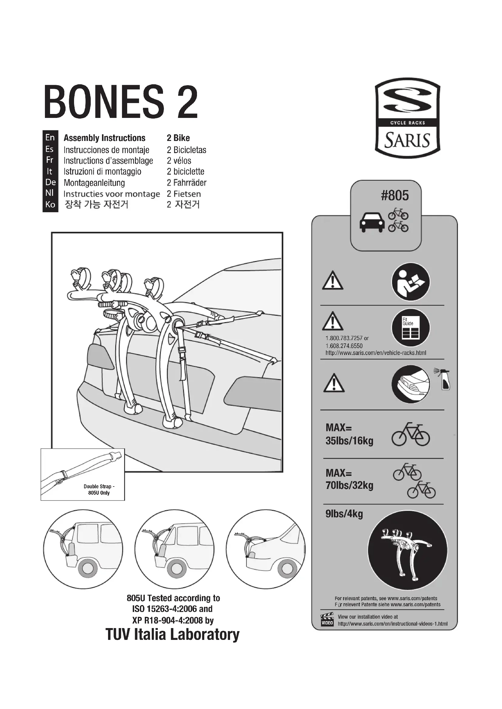 Bones 2 - Porte-vélo Saris - Notice d'utilisation et mode d'emploi gratuit