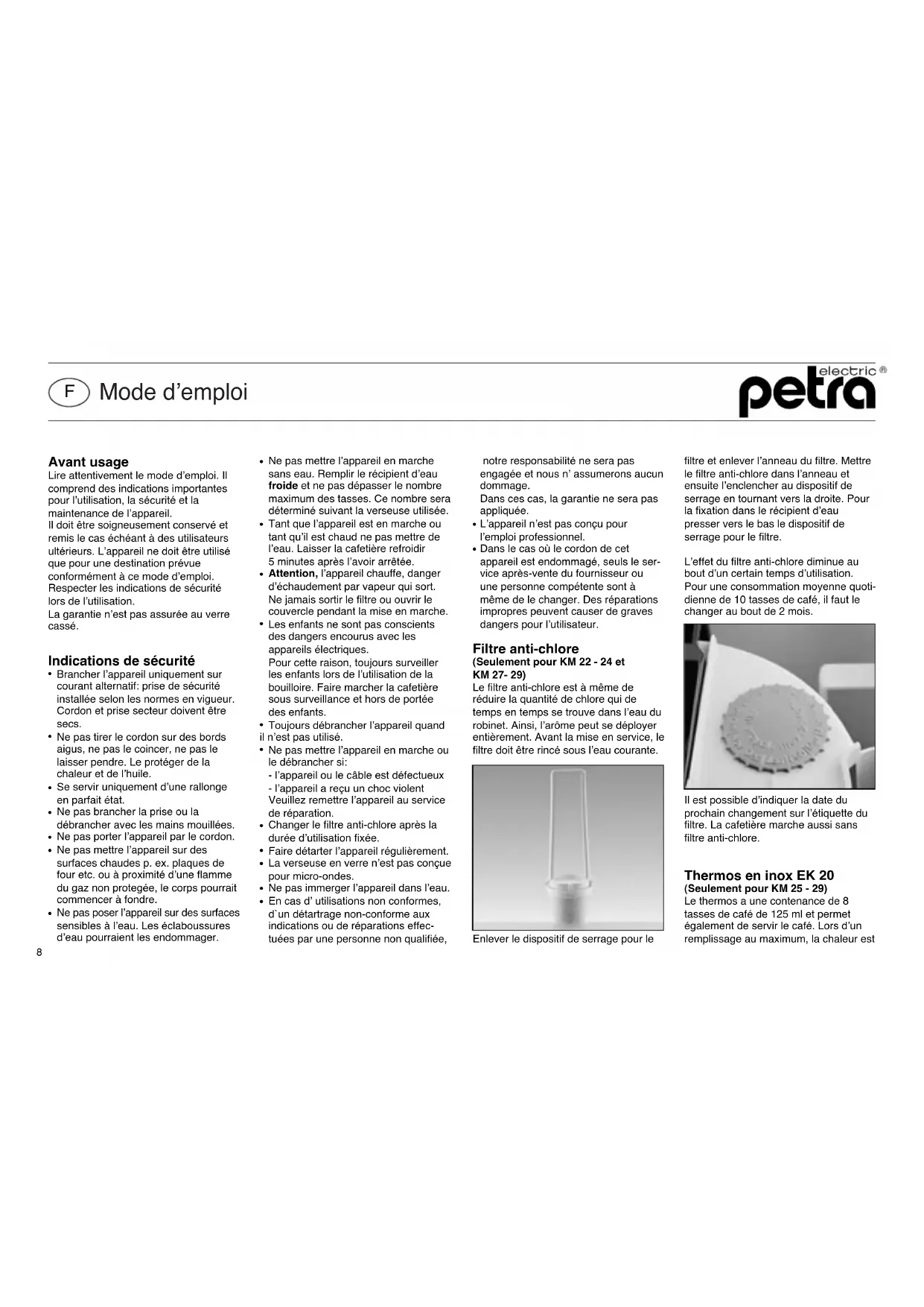 KM 22 - Machine à café Petra Electric - Notice d'utilisation et mode d'emploi gratuit