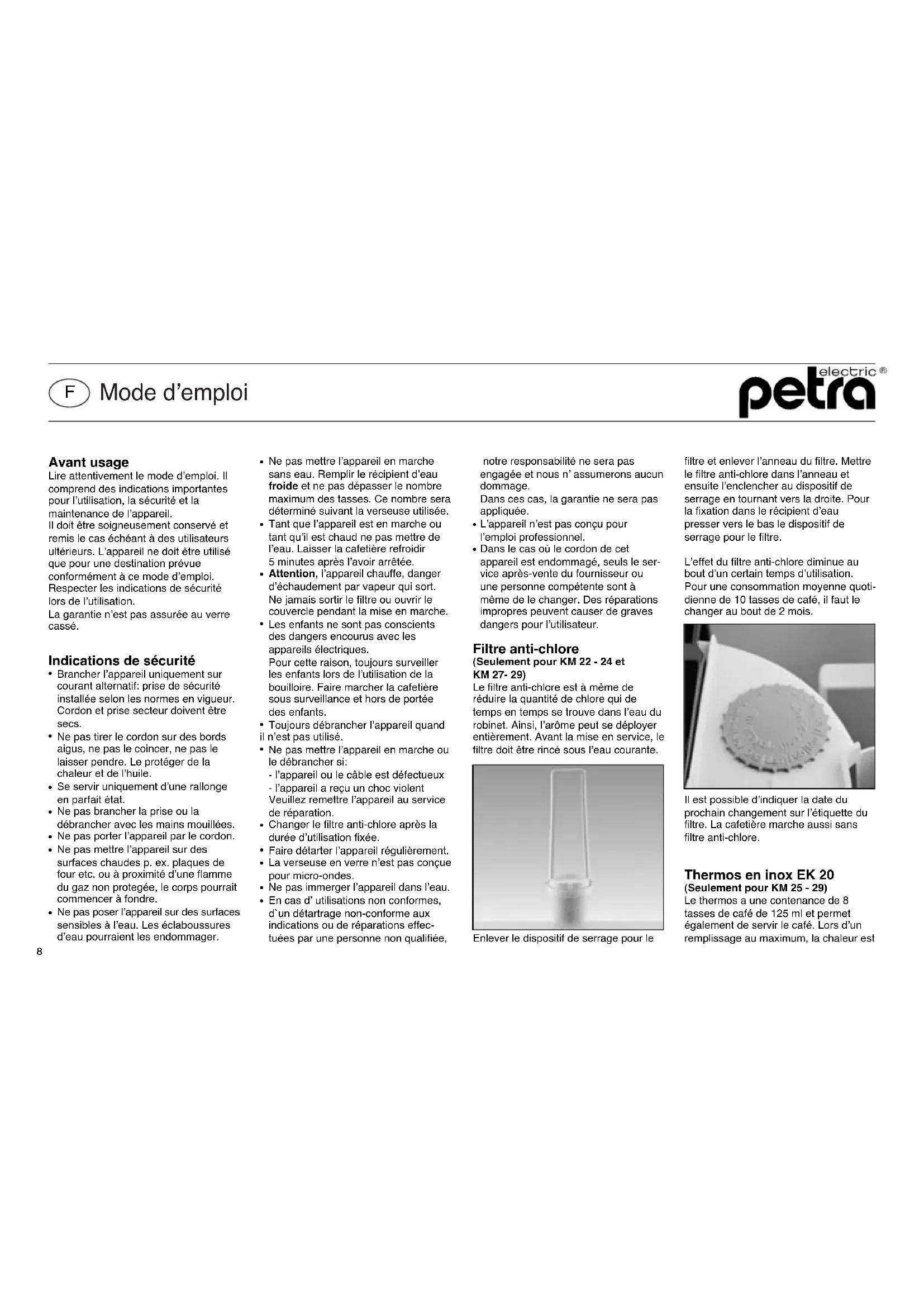 KM 28 - Machine à café Petra Electric - Notice d'utilisation et mode d'emploi gratuit