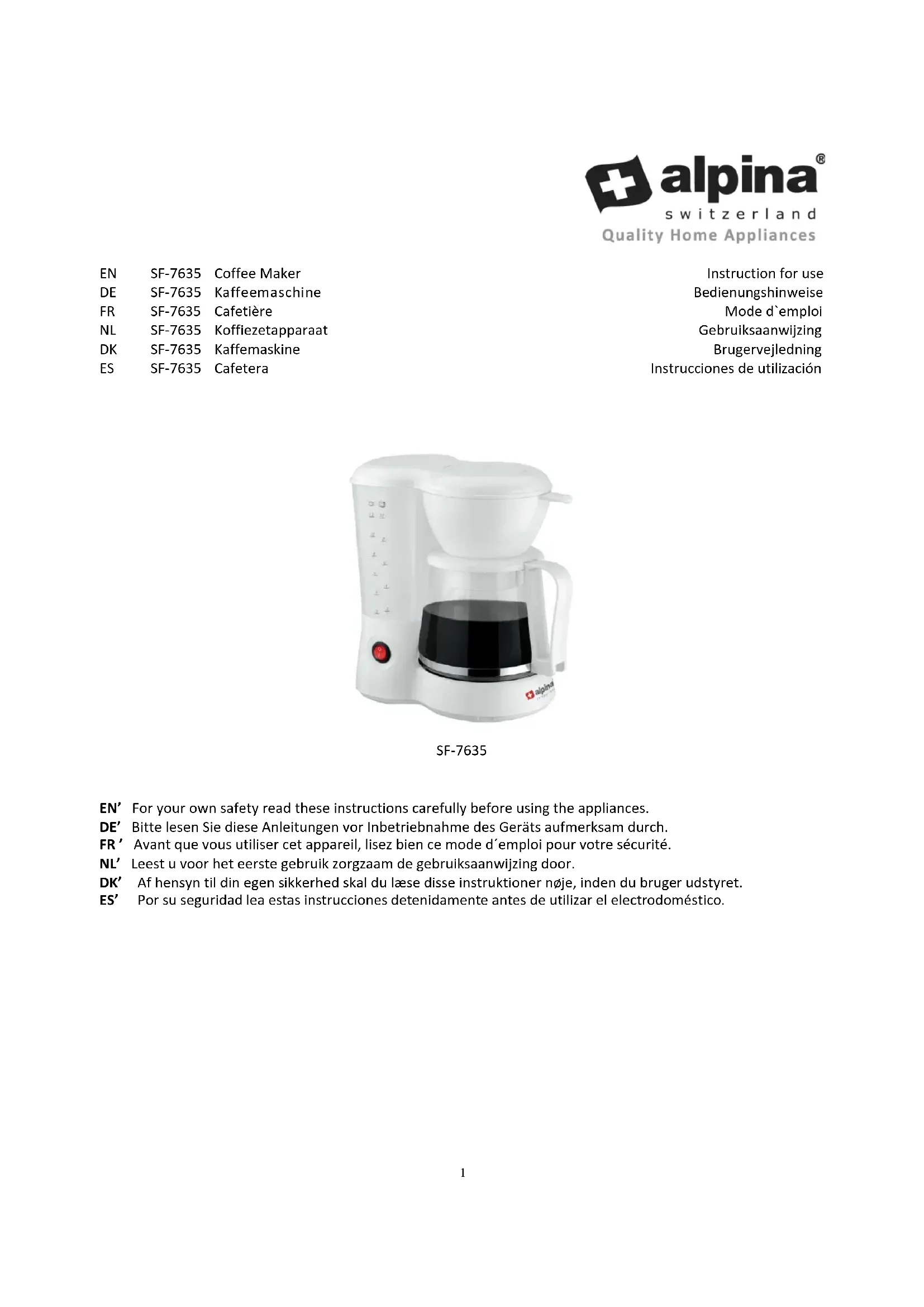 Retrouvez gratuitement la notice de l'appareil SF7635 ALPINA au format PDF.