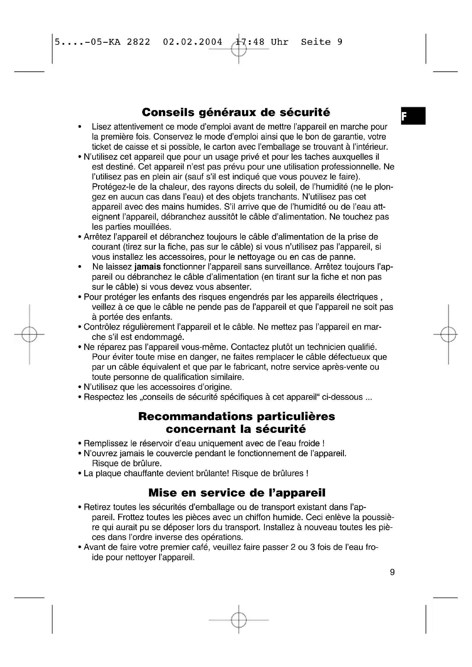- Respectez les „conseils de sécurité spécifiques à cet appareil“ ci-dessous ... Recommandations particulières concernant la sécurité