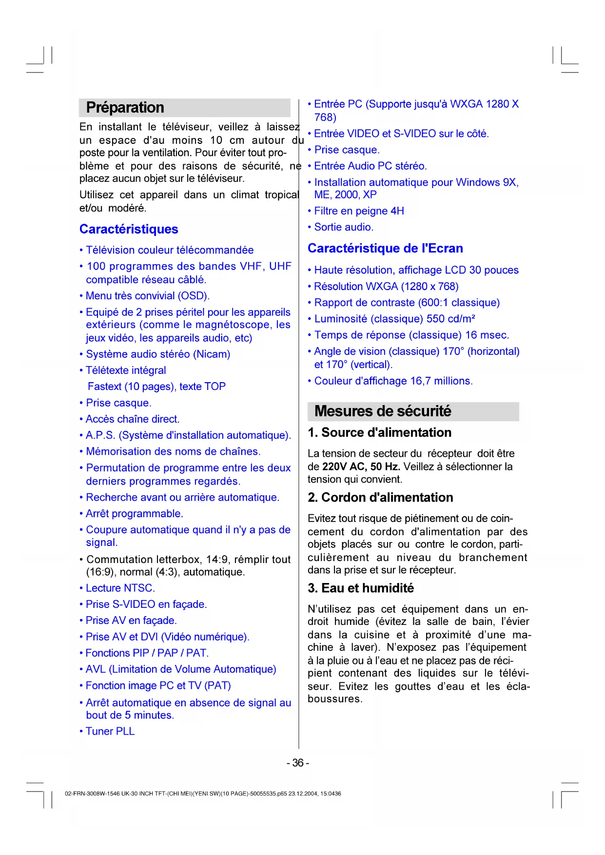 02-FRN-3008W-1546 UK-30 INCH TFT-(CHI MEI)(YENI SW)(10 PAGE)-50055535.p65 23.12.2004, 15:0451- 52 - Pour afficher la page suivante, appuyez une nouvelle fois sur la touche
