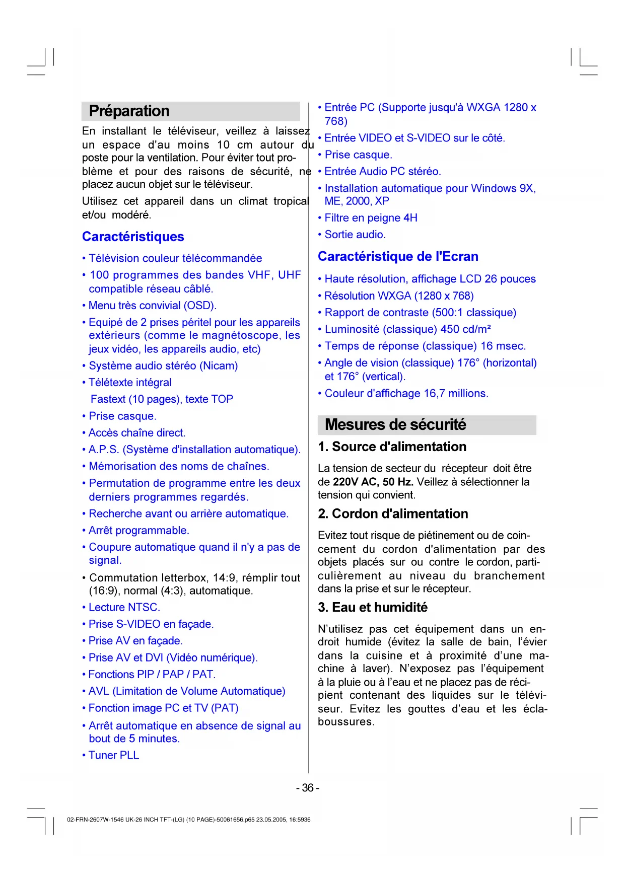 - Caractéristiques p. 36