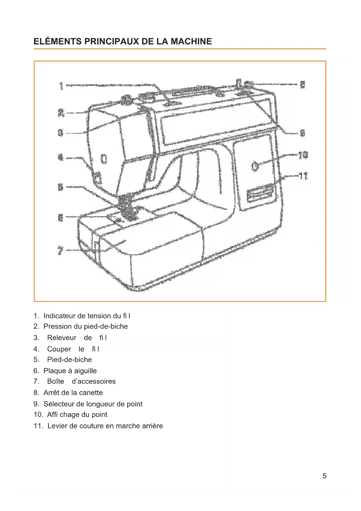 - Cette machine est équipée d’une double sécurité. N’utiliser que des pièces détachées d’origine. Voir les instruction relatives à la maintenance des appareil avec une double sécurité. CONSERVER CES INSTRUCTIONSFélicitations ! En tant que propriétaire d’une nouvelle machine à coudre, vous pourrez effectuer une couture de qualité sur tous types de tissus, des jeans à plusieurs couches aux soies les plus délicates. Votre machine à coudre offre une simplicité enfantine et son fonctionnement est très facile. Pour votre sécurité et pour pro¿ ter au maximum des nombreux avantages et du fonctionnement facile de votre machine à coudre, nous vous recommandons de lire attentivement toutes les mises en garde importantes et les instructions d’utilisation et d’entretien de ce guide de l’utilisateur. Avant de commencer à utiliser votre machine, nous vous recommandons de découvrir les nombreuses fonctionnalités et les avantages en lisant le manuel, étape par étape, assise devant votre machine. Pour vous assurer de toujours avoir les capacités de couture les plus modernes, le fabricant se réserve le droit de modi¿ er l’apparence, le design ou les accessoires de cette machine à coudre quand cela s’avère nécessaire.4
