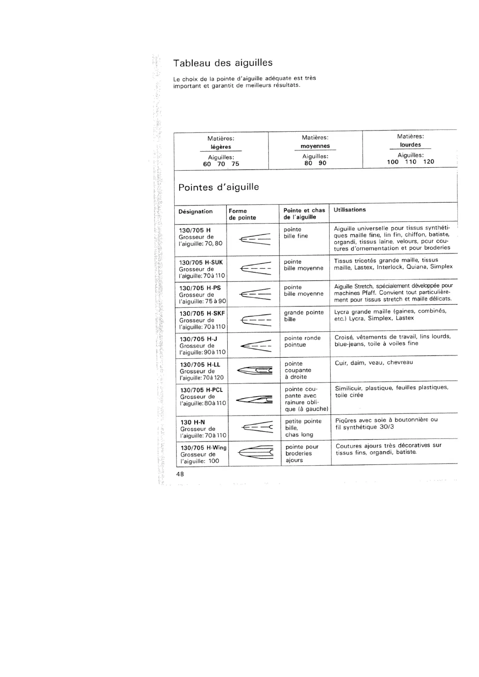 pour broderies130/705H-SUKpointeTissustricotesgrandemaille,tissusGrosseur billemoyennemaille,Lastex,Interlock,Quiana,Simplexl’aiguille: 70à