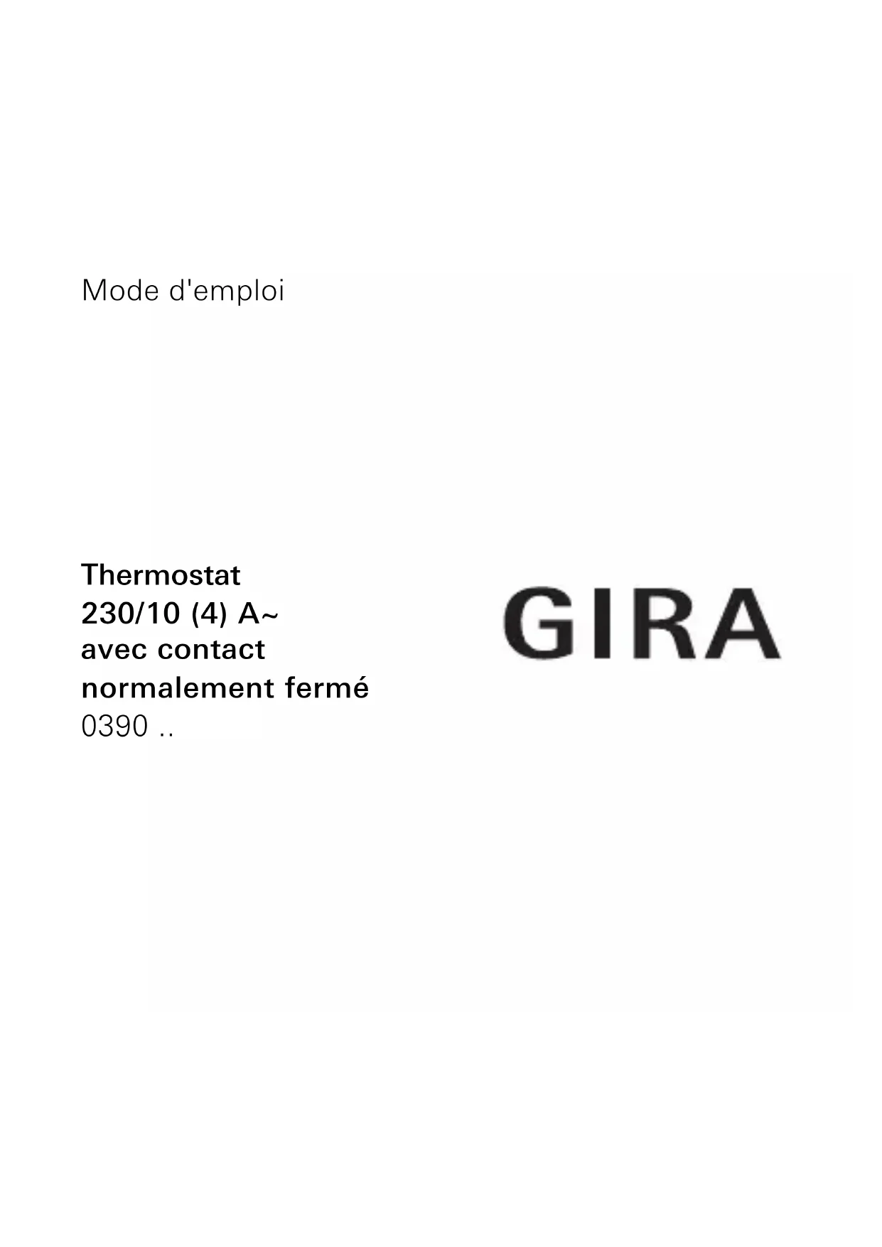 0390 - Thermostat Gira - Notice d'utilisation et mode d'emploi gratuit