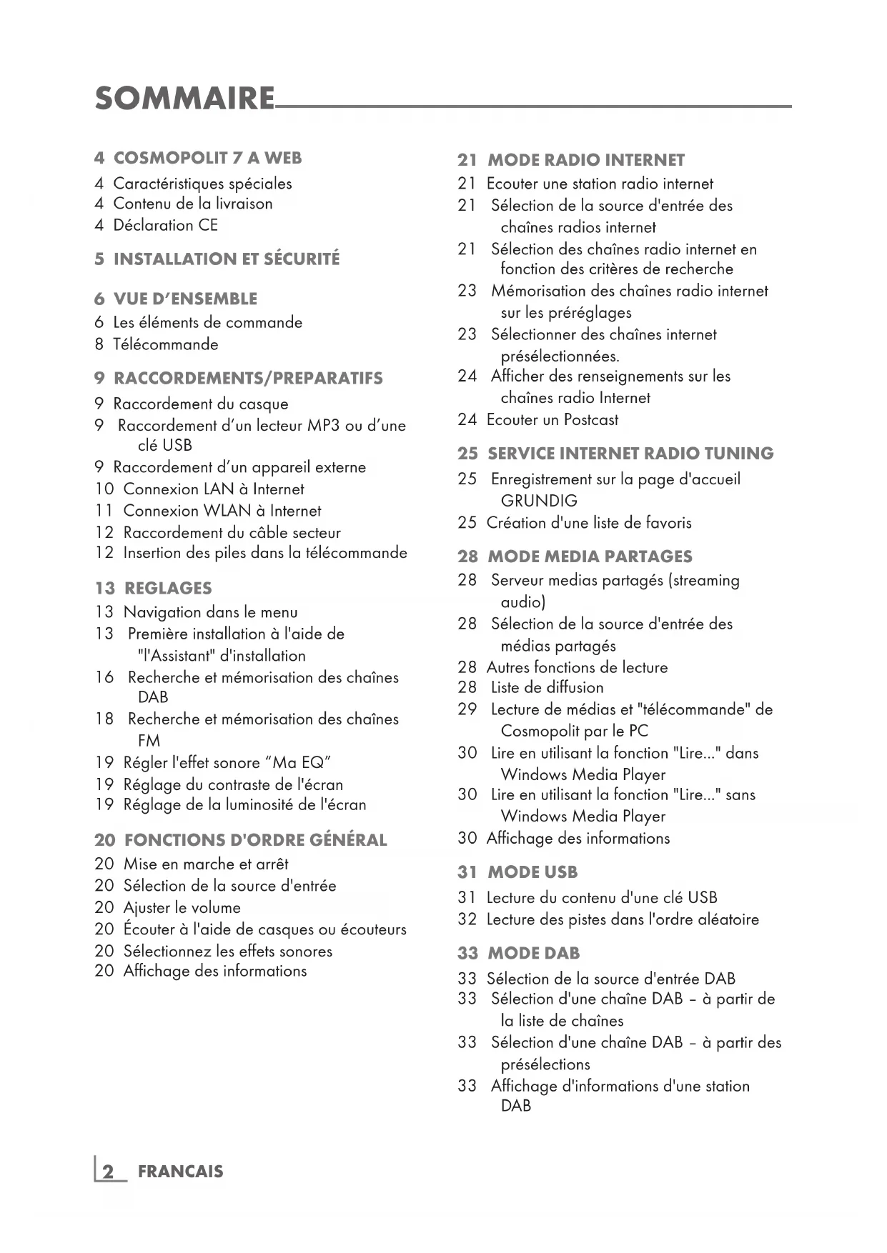 MODE D'EMPLOI Cosmopolit 7 A WEB GRUNDIG
