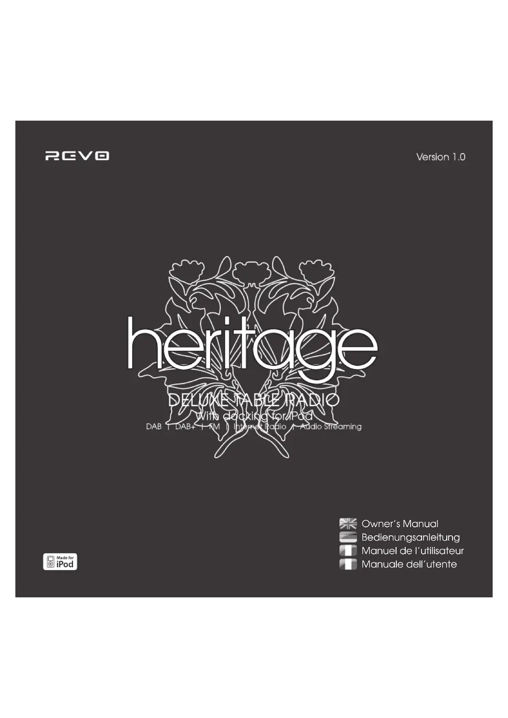 REVO et HÉRITAGE sont des marques déposées ou enregistrées de Revo Technologies Ltd. iPod est une marque déposée d'Apple Inc., enregistrée aux USA et dans d'autres pays.