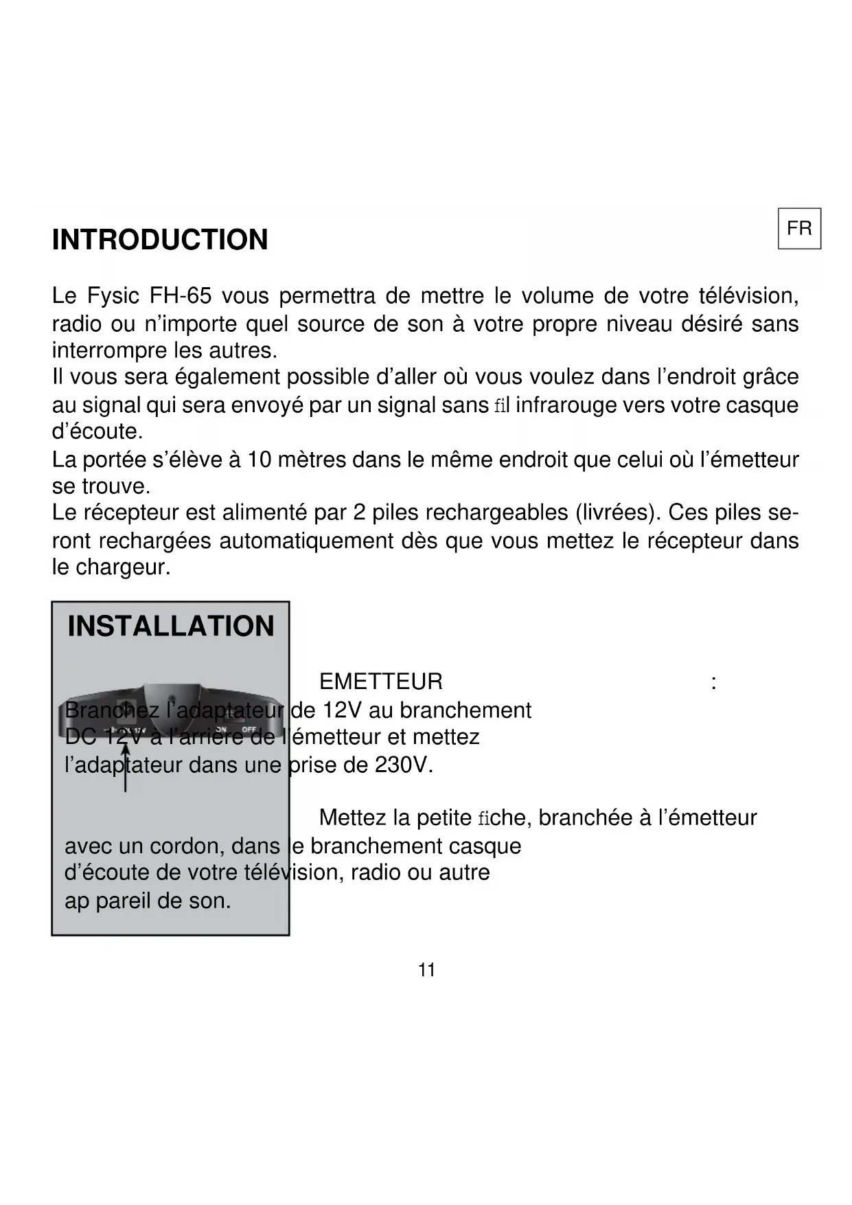 Le FYSIC FH-65 répond aux conditions et équipements essentiels, définis par la directive européen 1999/5/EC.