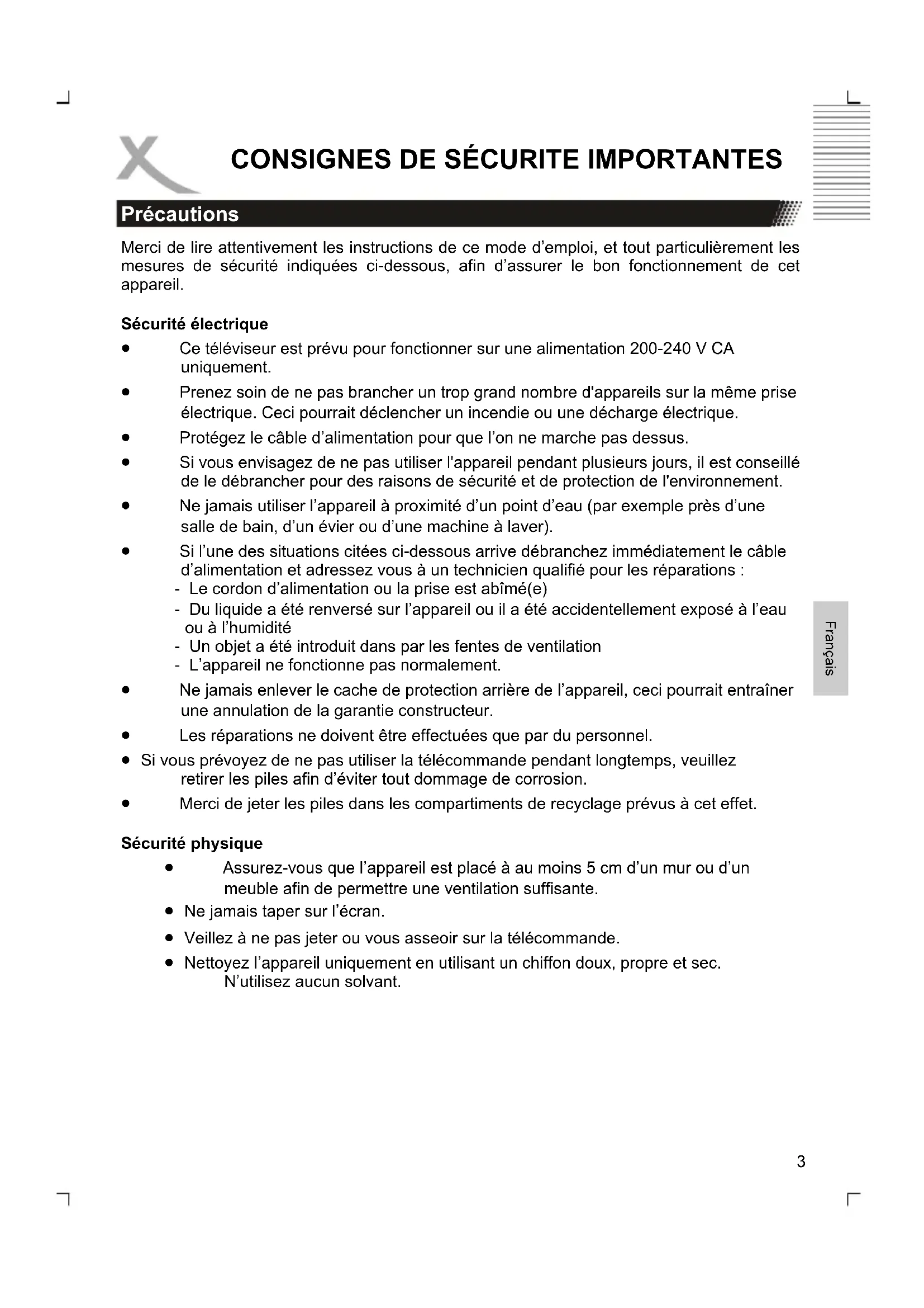 - Merci de jeter les piles dans les compartiments de recyclage prévus à cet effet. Sécurité physique