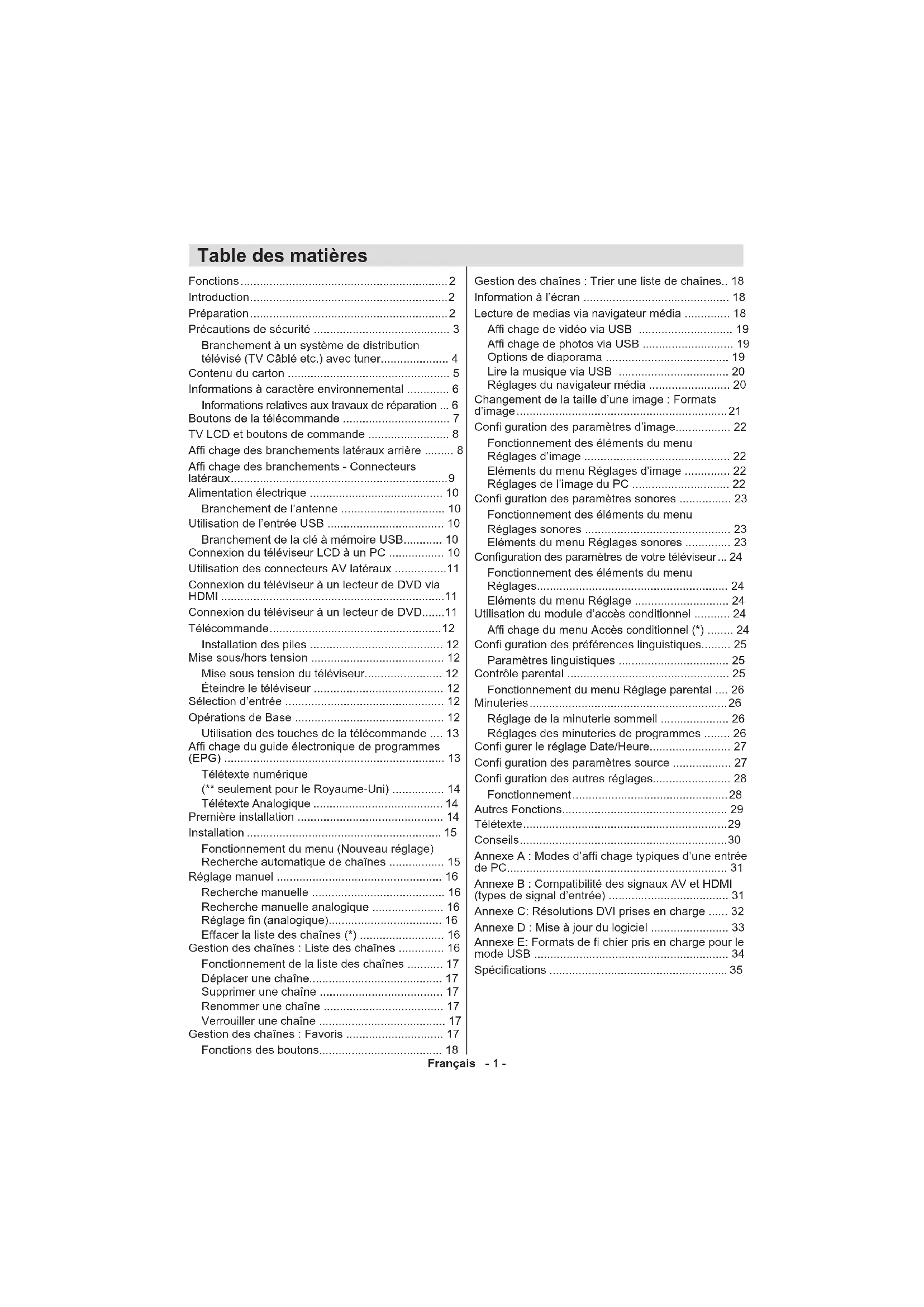 Dans certains cas, un signal sur l'écran du téléviseur LCD peut ne pas s'afficher correctement. Le problème peut être une incompatibilité avec les normes de l'équipement source (DVD, décodeur, etc.). Si vous rencontrez un tel problème, veuillez contacter votre fournisseur et le fabricant de l'appareil source.