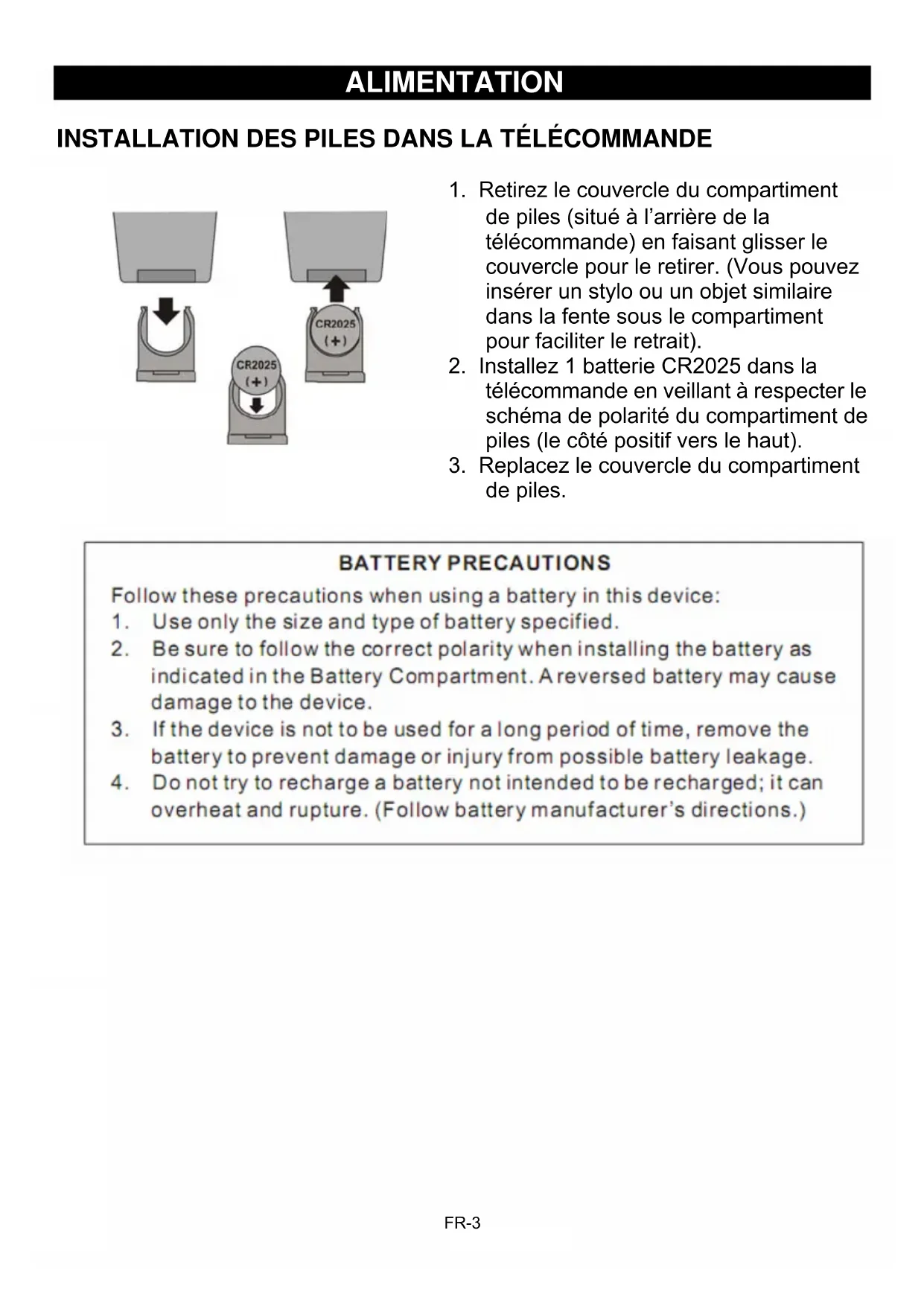 2. Installez 1 batterie CR2025 dans la