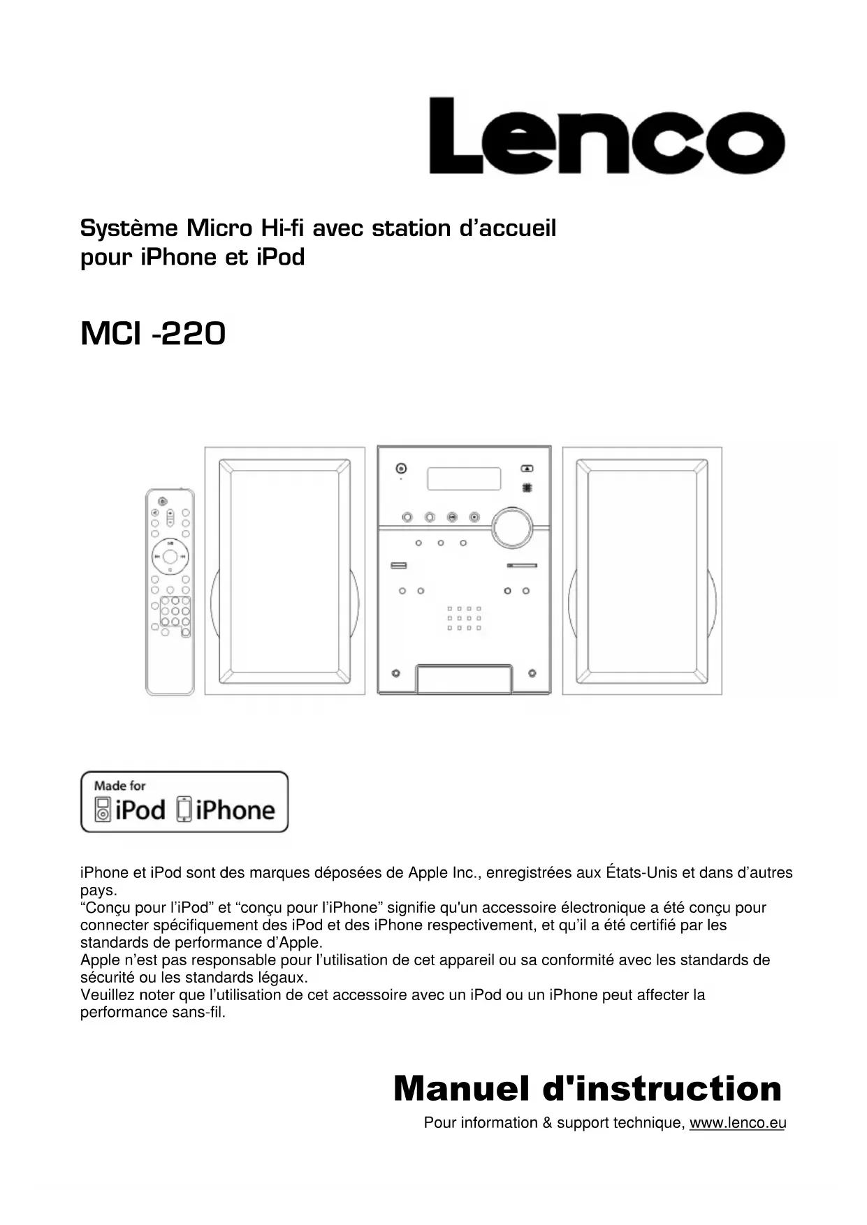 Retrouvez gratuitement la notice de l'appareil MCI220 LENCO au format PDF.
