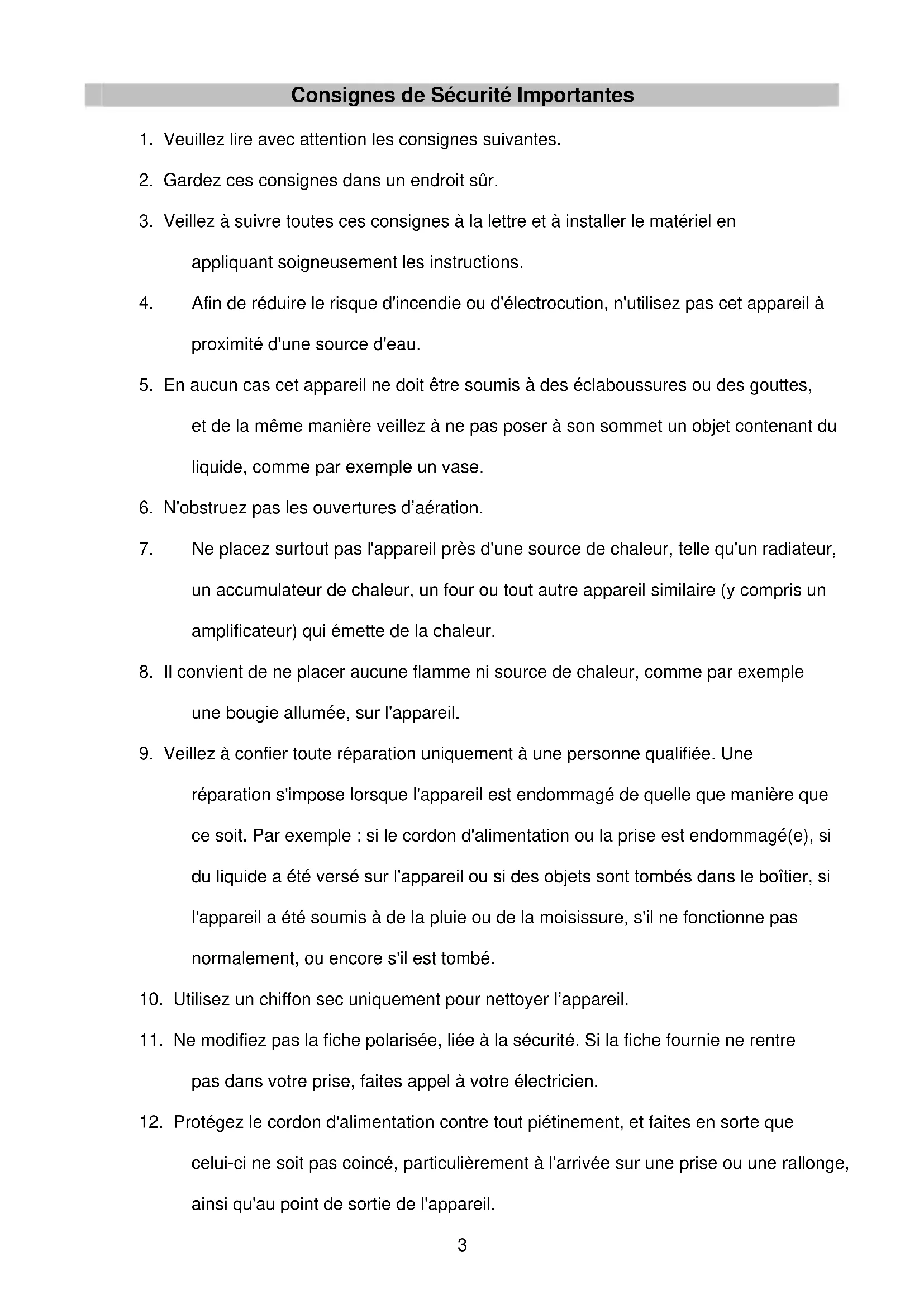 3. Veillez à suivre toutes ces consignes à la lettre et à installer le matériel en