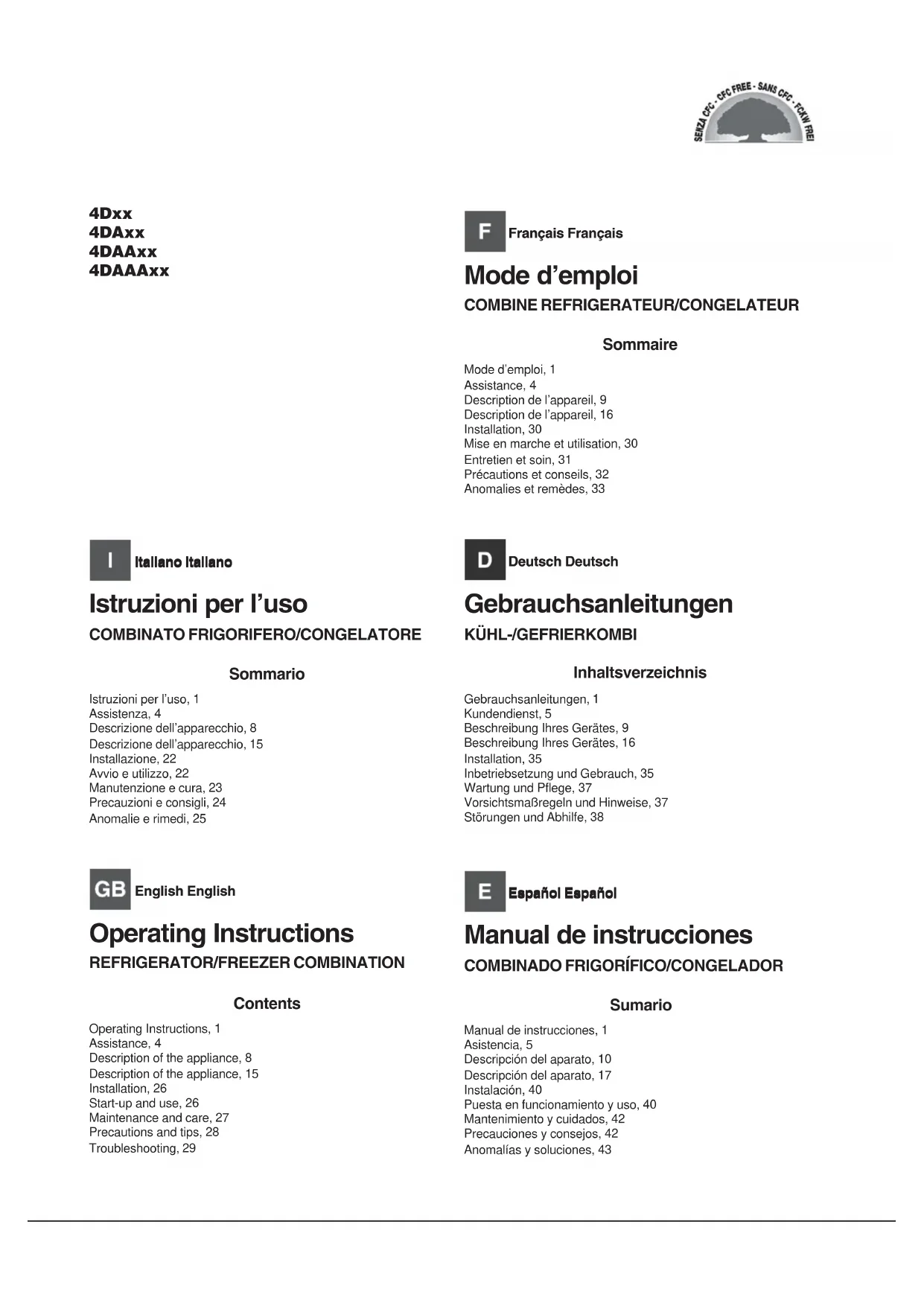 - Grâce à une ouverture indépendante des portes et des tiroirsdu freezer, ce produit permet de réaliser 50% d’économied’énergie en plus par rapport à un combiné normal 2 portes. Anomalies et remèdes Il peut arriver que l’appareil ne fonctionne pas. Avant detéléphoner au service de dépannage (voir Assistance), contrôlezs’il ne s’agit pas d’un problème facile à résoudre à l’aide de laliste suivante.Le voyant vert ALIMENTATION ne s’allume pas.• La fiche n’est pas branchée dans la prise de courant ou pasassez enfoncée pour qu’il y ait contact ou bien il y a unecoupure de courant.Le moteur ne démarre pas.• L’appareil est équipé d’un système protège-moteur ( voir Mise en marche et utilisation