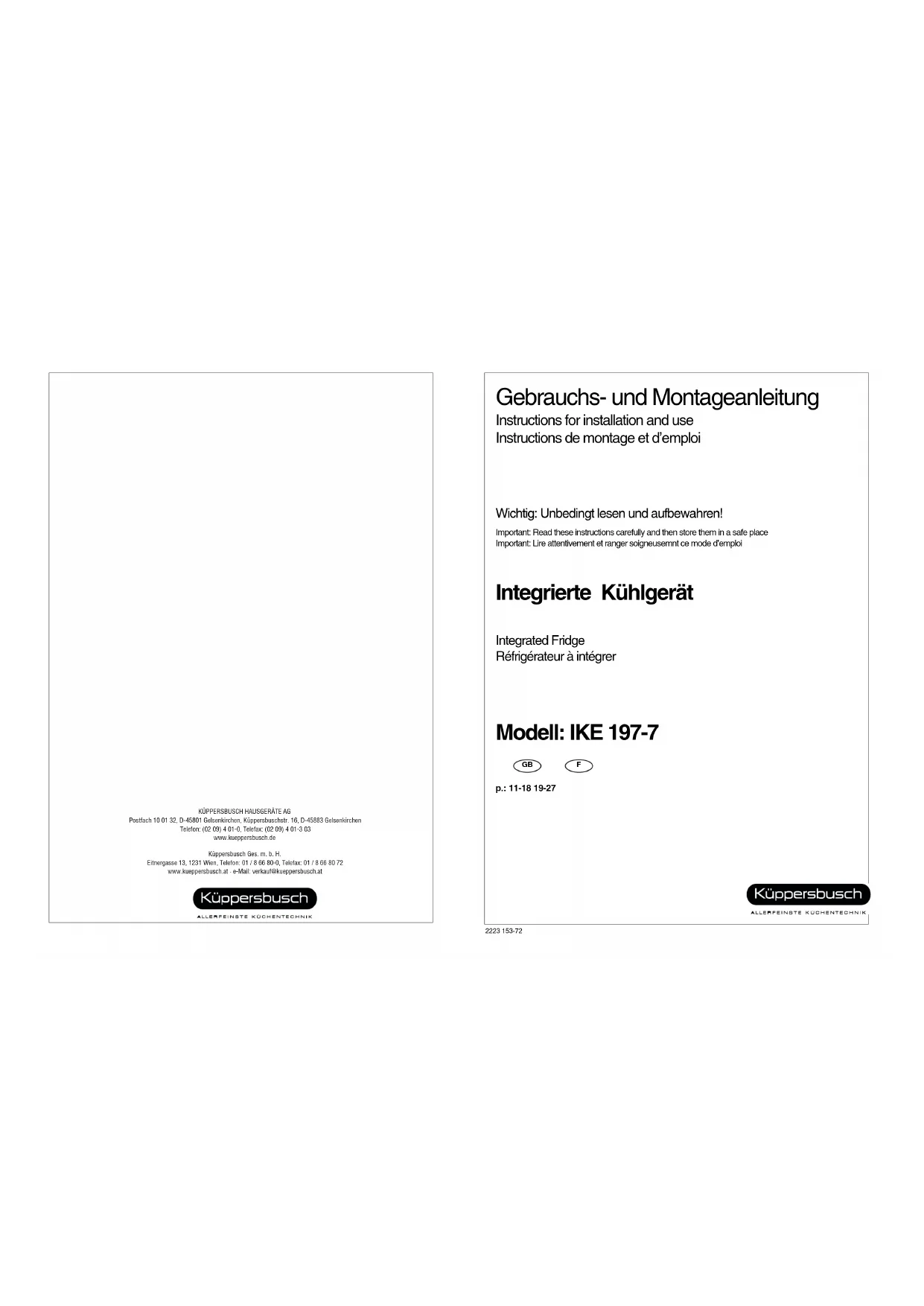 IKE 1977 - Réfrigérateur Küppersbusch - Notice d'utilisation et mode d'emploi gratuit